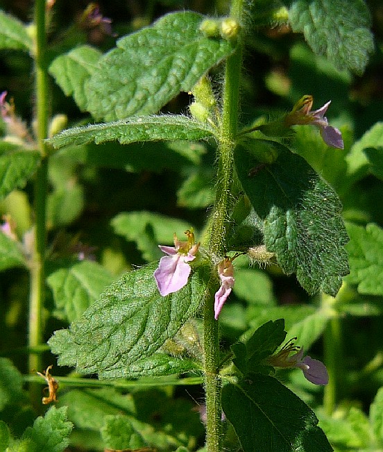 Blätter eiförmig, gekerbt, gestielt, behaart Blattunterseite behaart, mit hervortretenden Nerven Stängel nur im unteren Teil +/- verholzt