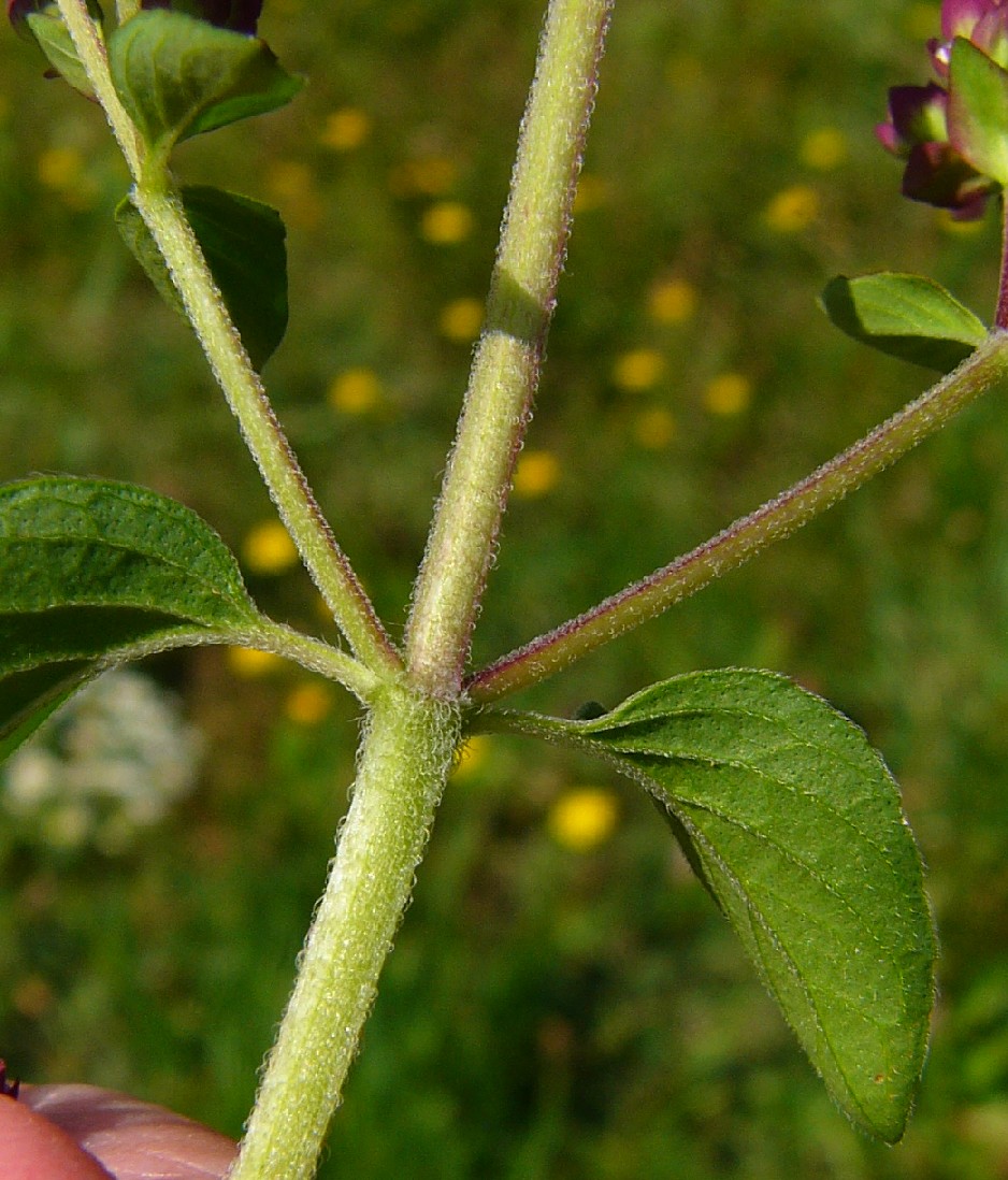 Blätter eiförmig, behaart Stängel rundum behaart