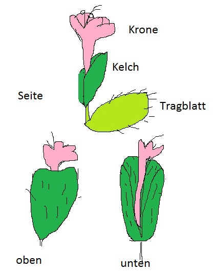 Kelch nicht sichtbar, nur aus 1 Kelchblatt bestehend