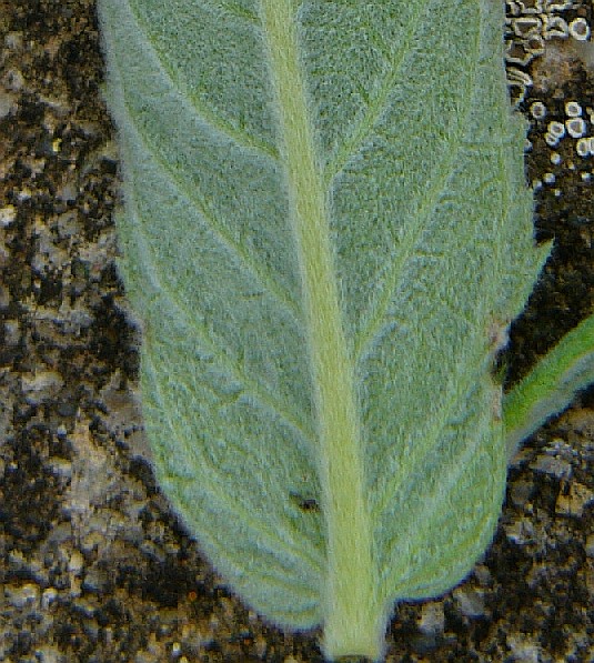 Blätter unterseits graugrün, filzig, mit kurzen Haaren