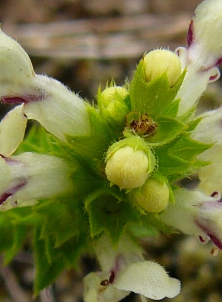 Pflanze 20 - 70 cm groß Blüten blassgelb, zu 6 - 10 in Quirlen, Ober- und Unterlippe weit auseinanderklaffend Kelchzähne dreieckig, mit kahlen stechenden Grannenspitzen Stängel kräftig, behaart