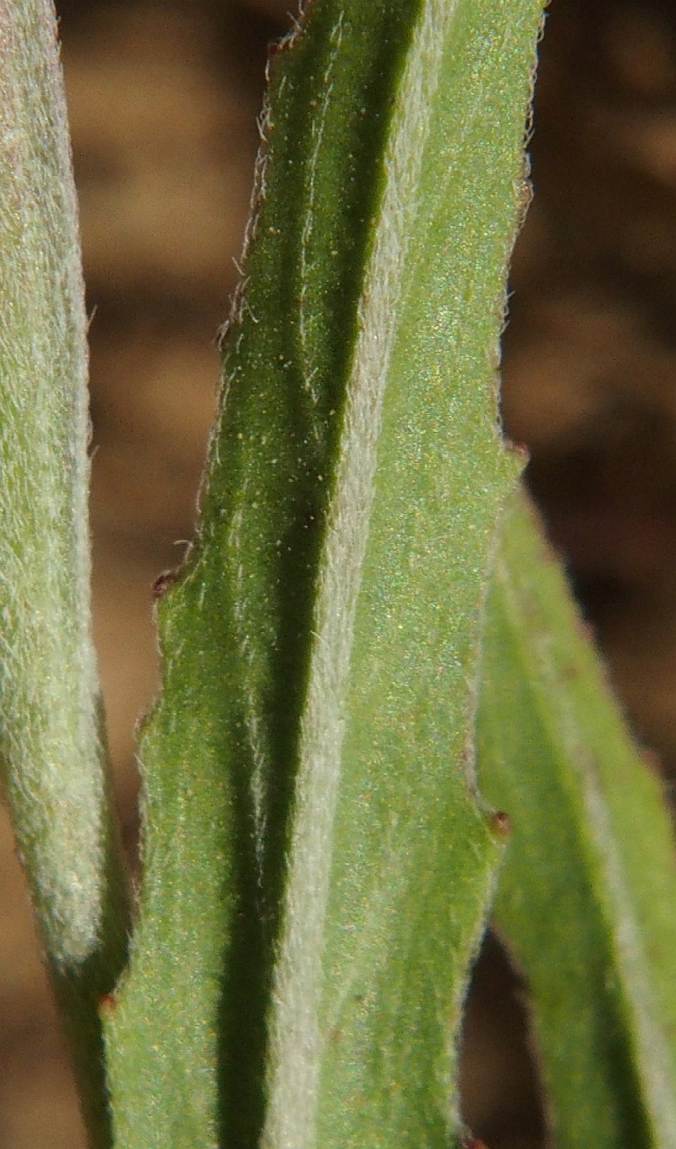 Stängel oben von dichten Härchen grau, untere und mittlere Blätter kurz gestielt