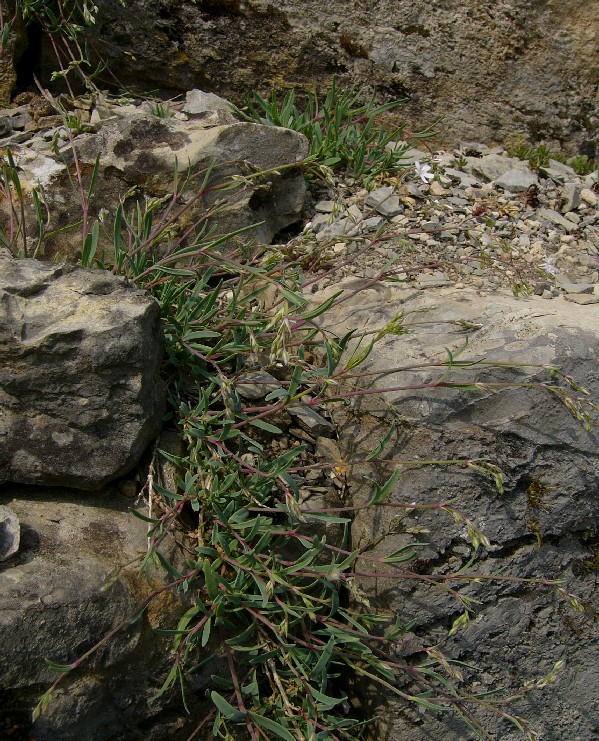 Stängel niederliegend bis aufsteigend, Stängelblätter blaugrün, gegenständig Stängel kahl, kriechend bis aufsteigend