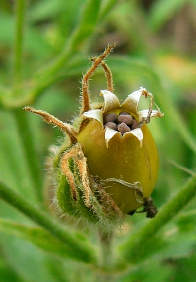 erhabenen Rippen, walzlich Kelch der weiblichen Blüten bauchig, 20 - 30 mm lang, mit 20 Adern Karpophor 1 - 2 mm lang Kapsel eiförmig, 10 - 25 mm lang, mit 10 Zähnen aufspringend Samen ca. 15 mm lamg, mit stumpfen Warzen