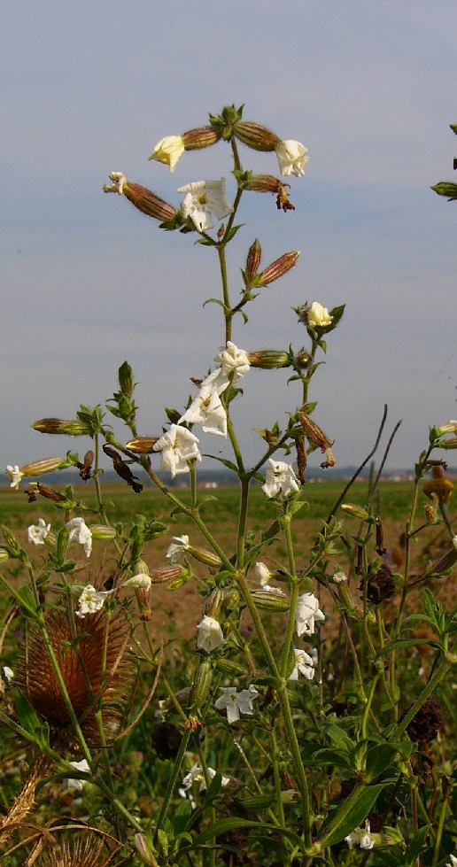 Lichtnelken/Leimkräuter -Blüten weiß, mit Nebenkrone, Kronblätter tief 2- spaltig, Kelch nicht aufgeblasen, mit Rippen