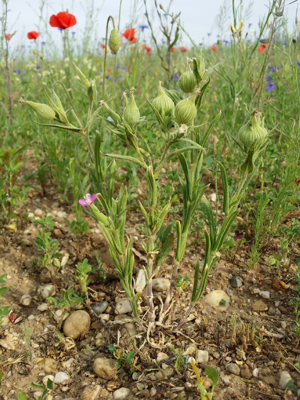 VI - VII, Trockenrasen, Sandstrände (0 - 2000 m) Synonyme: English name: Nom francais: Nome italiano: Verbreitung in Deutschland: Gefährdung in Deutschland: Weltweite Verbreitung: Eingebürgert in: Etymologie: Sandiges Biotop mit Massenvorkommen von Silene conica (Venedig, Isola del Lido):
