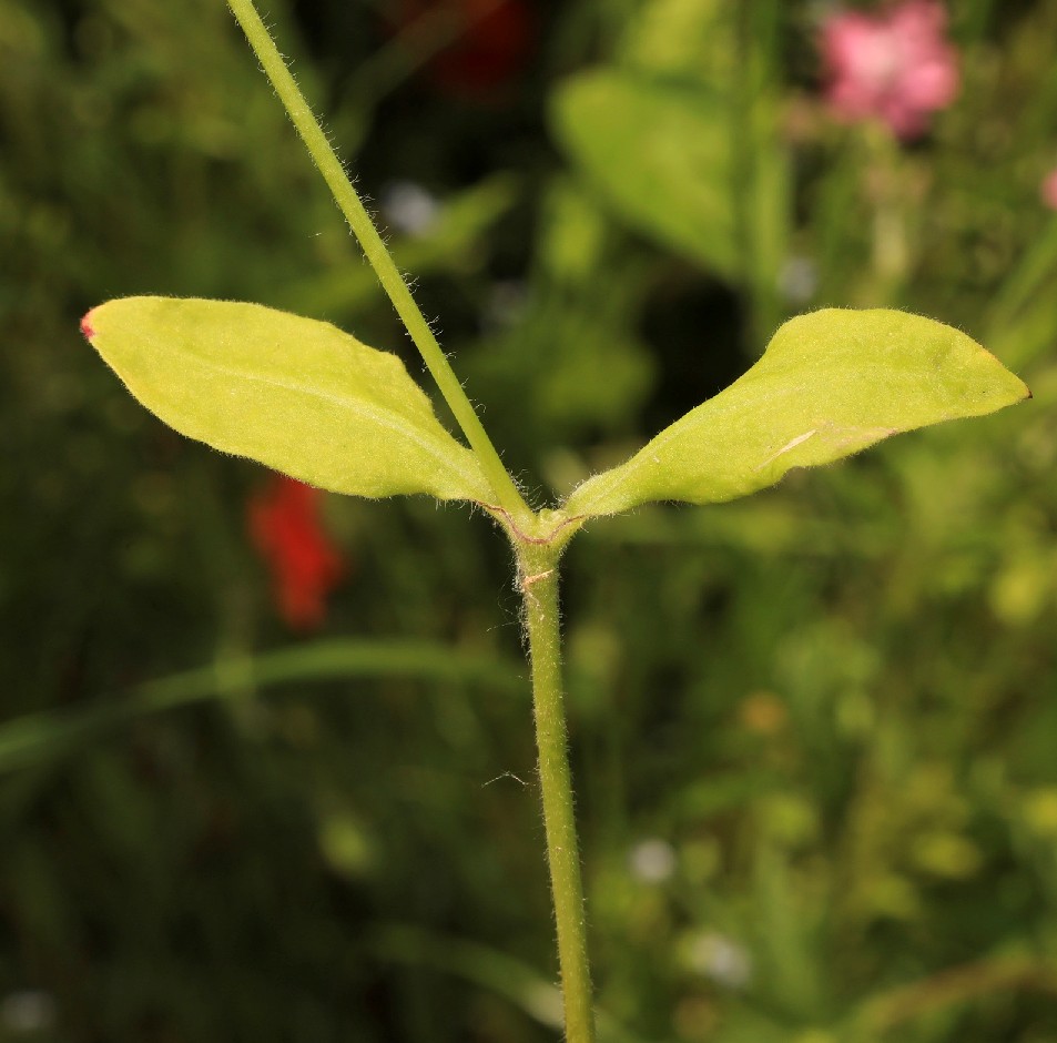 Blätter gegenständig, lanzettlich bis spatelförmig, behaart, am Grund mit schnell verwelkender Rosette