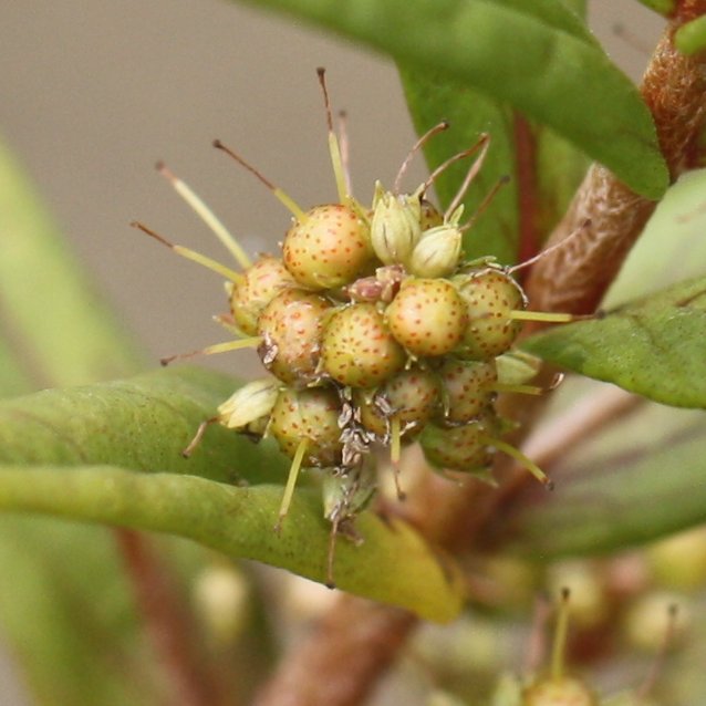 Blüten in gestielten, blattachselständigen, kugeligen Trauben,