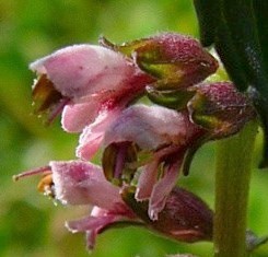 Pflanze verzweigt, 15 - 50 Blüten in einseitswendiger Ähre Krone fleischrot, filzig behaart, ca. 1 cm groß Blätter eiförmig bis lanzettlich, gekerbt