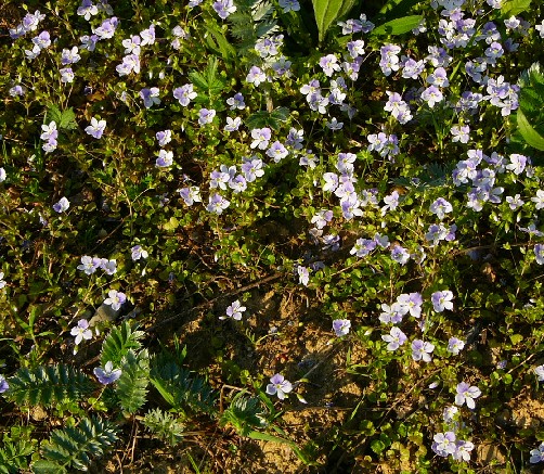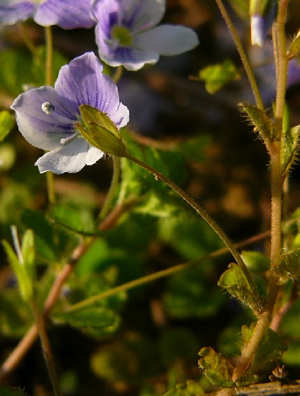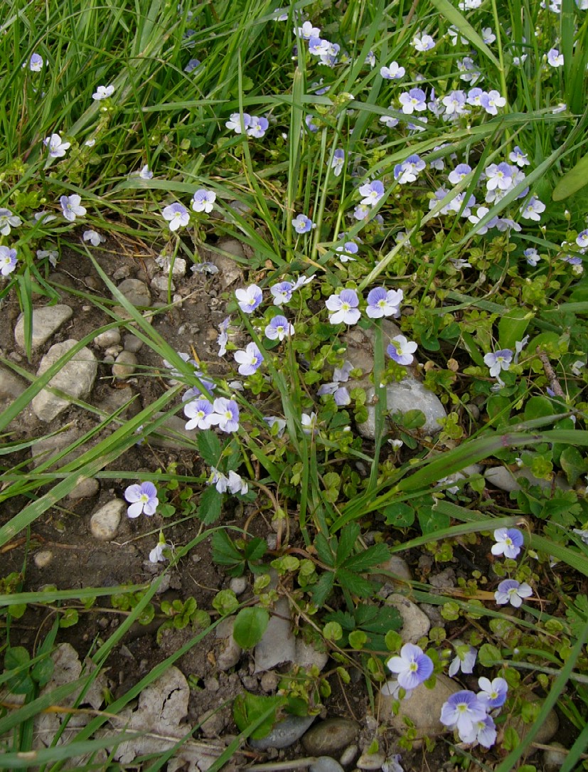 III - VI, Wiesen, Wege, Parks Synonyme: English name: Nom francais: Nome italiano: Verbreitung in Deutschland: Gefährdung in Deutschland: Weltweite Verbreitung: Etymologie: Veronica filiformis kann sich selbst nicht befruchten, sondern kann nur durch Pflanzen eines anderen Genotyps befruchtet werden. Deswegen sind die meisten Populationen durch vegetative Vermehrung entstanden (z.B. durch abgerissene und sich bewurzelnde Stängelstücke). Dies ist auch der Grund, dass es meist nicht zur Bildung von Früchten kommt.