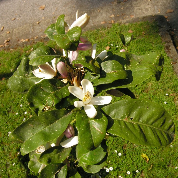V- IX, Ziergehölz Züchtung aus Pamelmuse (Citrus maxima), Mandarine (Citrus reticulata) und Zitronatzitrone (Citrus medica) Synonyme: English name: Verbreitung in Deutschland: Gefährdung in Deutschland: Weltweite Verbreitung: Hauptanbauländer: Viele Sorten!