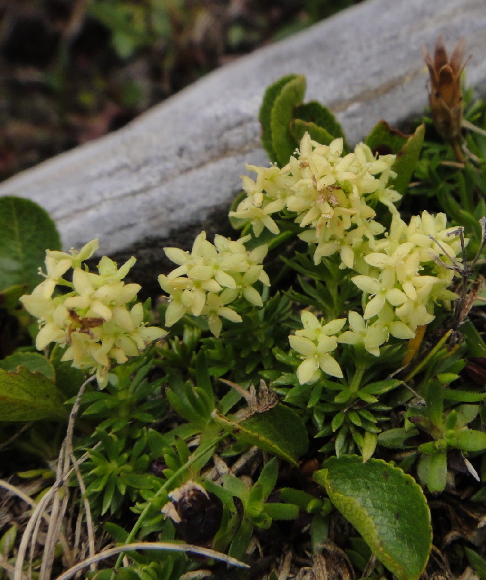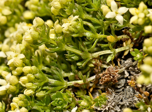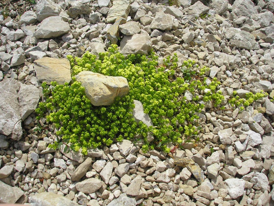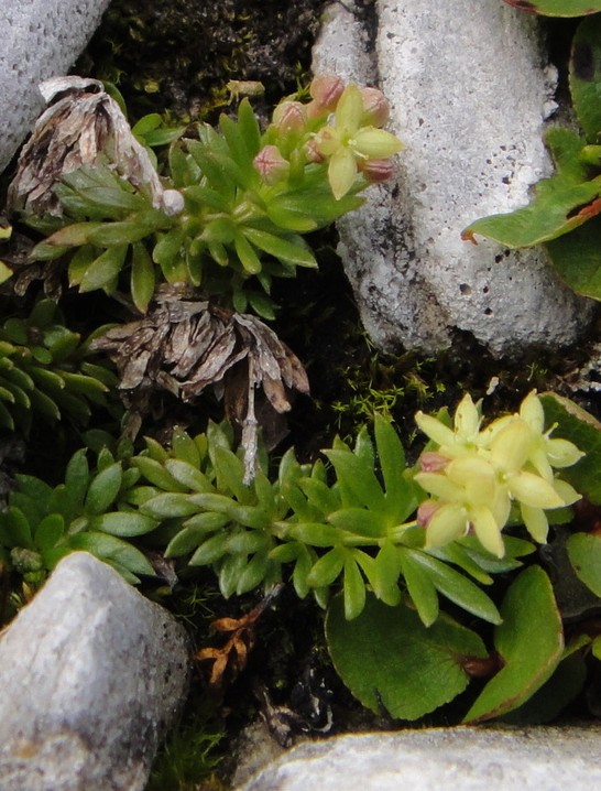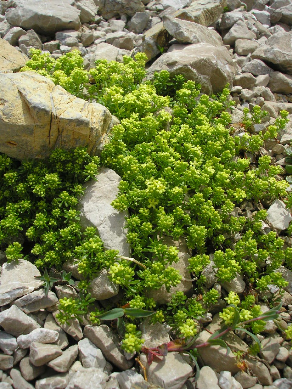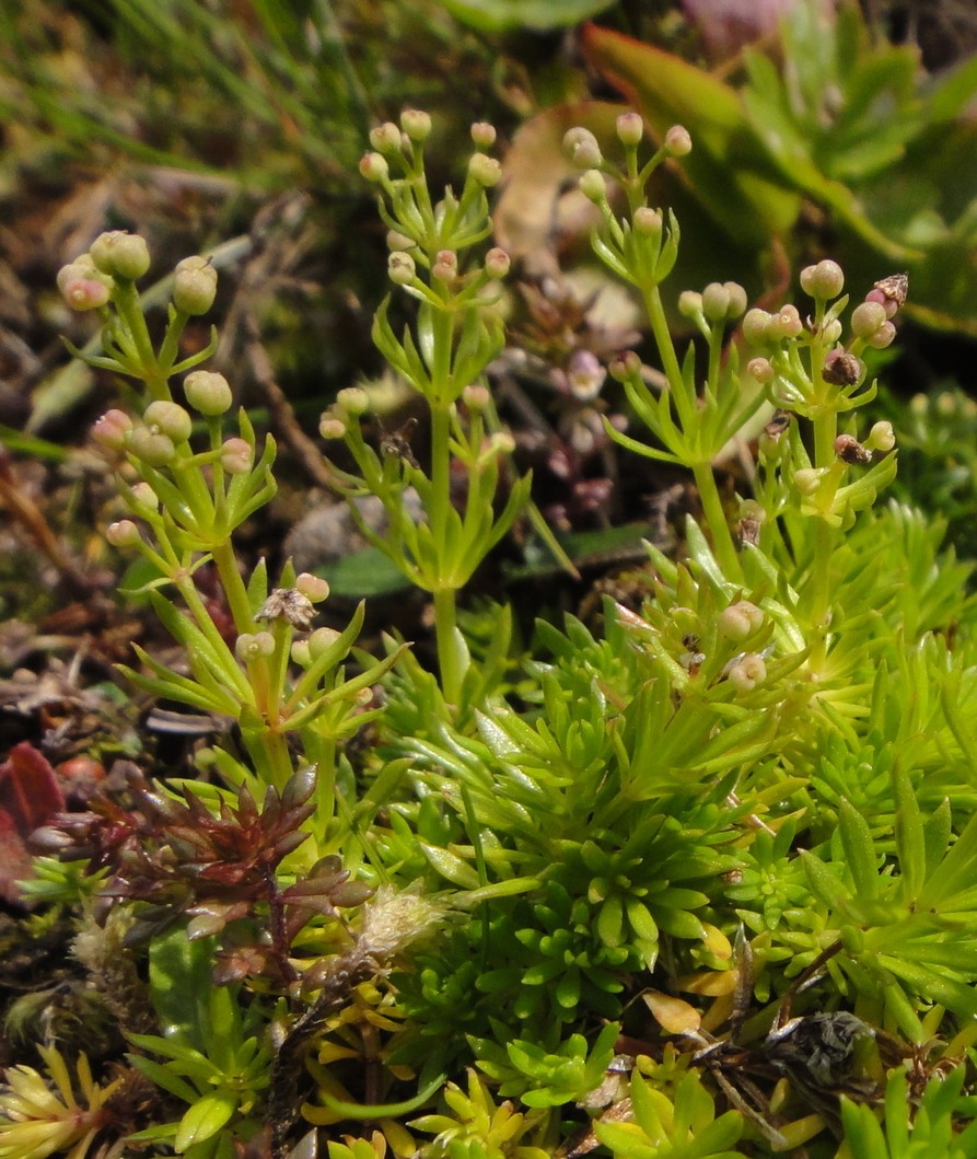 | Verbreitung: Westalpen Fruchtstiele abwärts gekrümmt, 2 - 3 mm lang Blätter zu 6 - 7 im Wirtel > 1