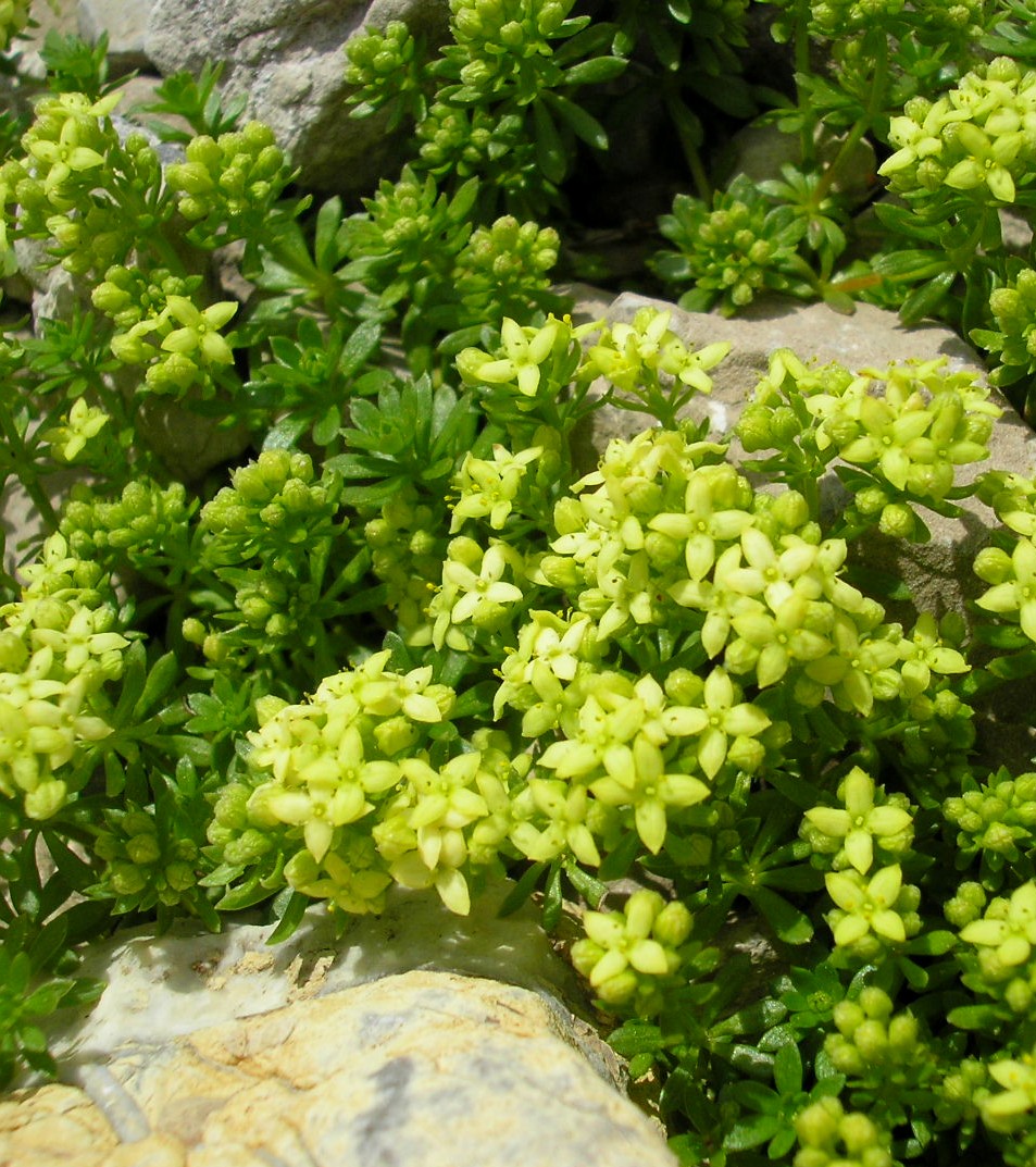 Blätter dicklich, zu 6 - 7 im Wirtel, am Rand oft fein gezähnt