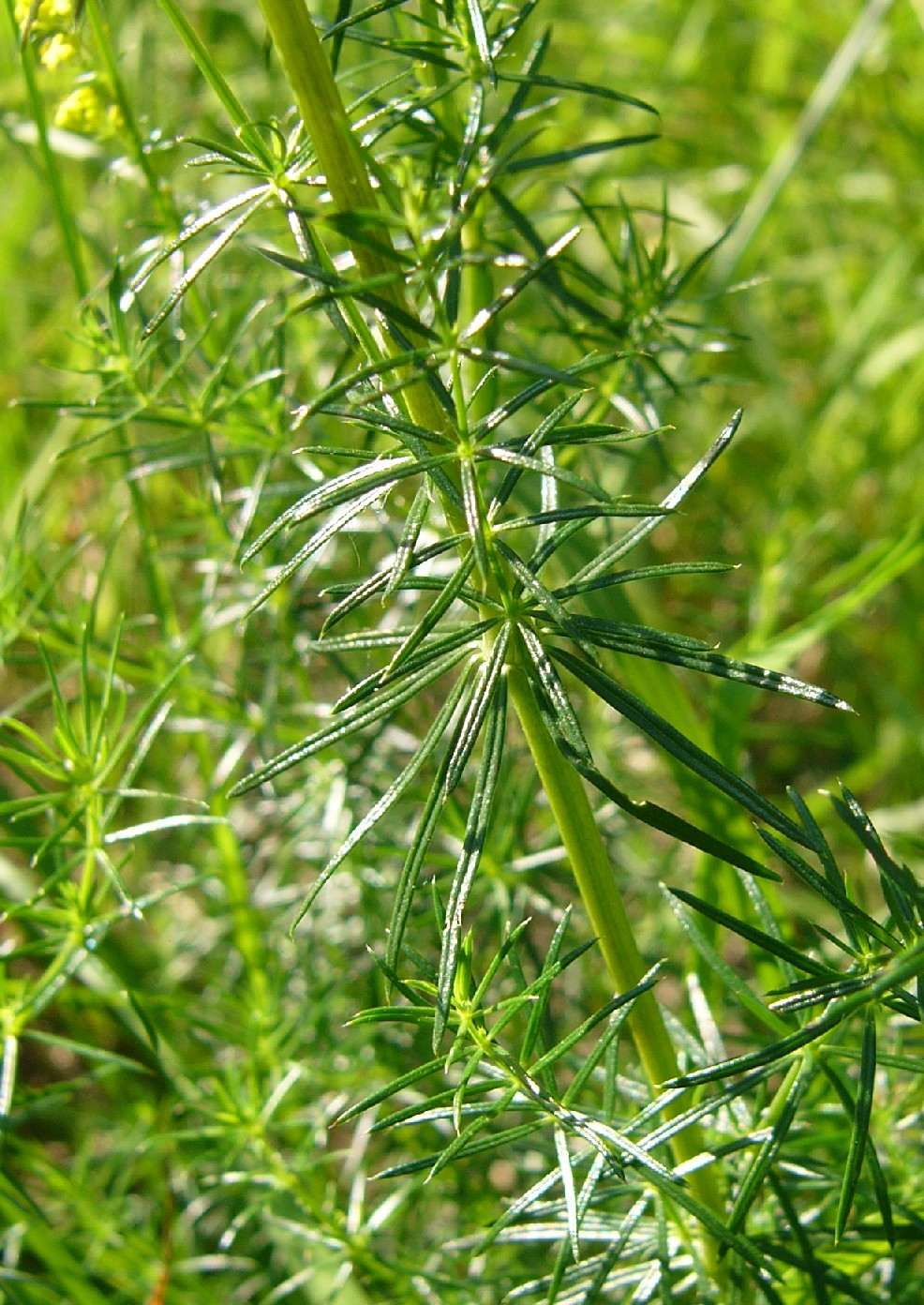 Blätter lanzettlich oder linealisch, zu 6 - 12 in Wirteln Den Achseln der Blätter entspringen vielblütige Blütenstände > Labkraut (Galium)