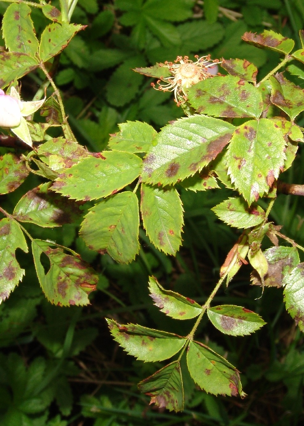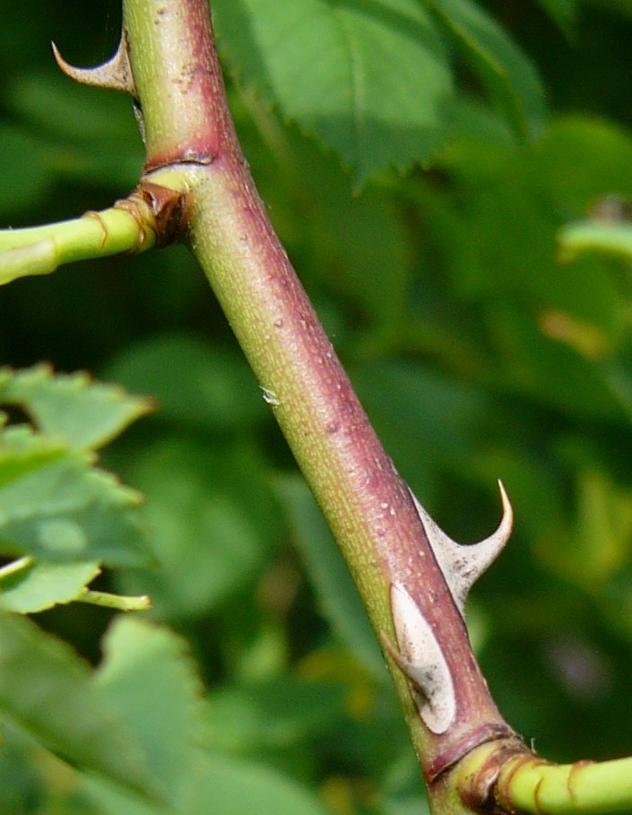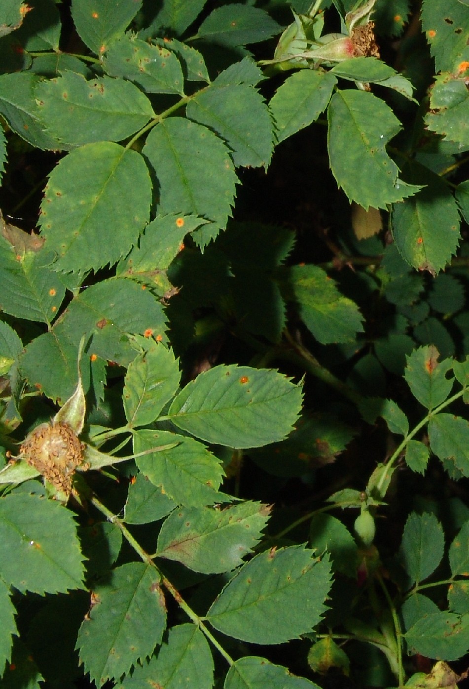 Kleiner als Rosa canina und größer als Rosa dumalis Frisch aufgeblühte Blüten rosa Narbenköpfchen kugelig Kelchblätter abstehend oder flatterig, später abfallend Reife Hagebutten rot, Fruchtstiele länger als bei Rosa vosagiaca, Kelchblätter teilweise abfallend teilweise aber auch haftend Stacheln hakig gekrümmt Blätter auf der Fläche vollständig kahl, bläulichgrün Blattstiele kahl, mit oder ohne Drüsen