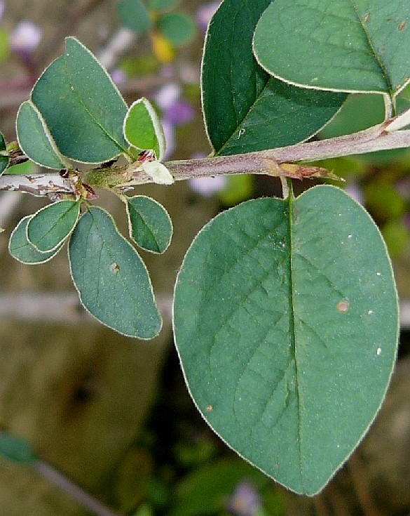 Blätter eiförmig 2 - 7 cm lang, ganzrandig,