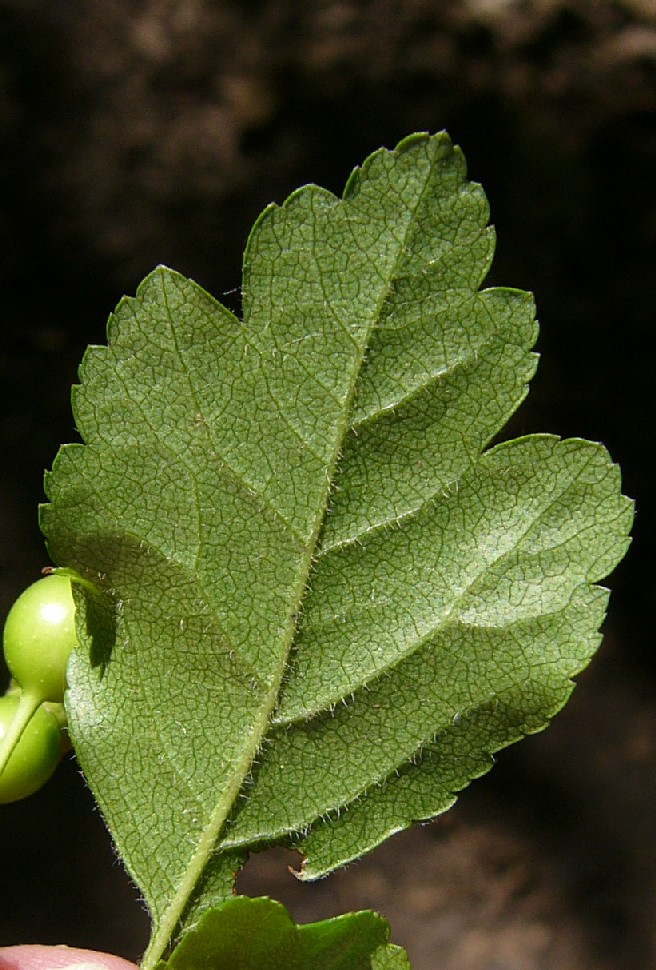 | Blätter 2- 3,5 cm lang, Blattnerven spärlich behaart Kelchblätter +/- so lang wie breit, der Frucht anliegend > 1