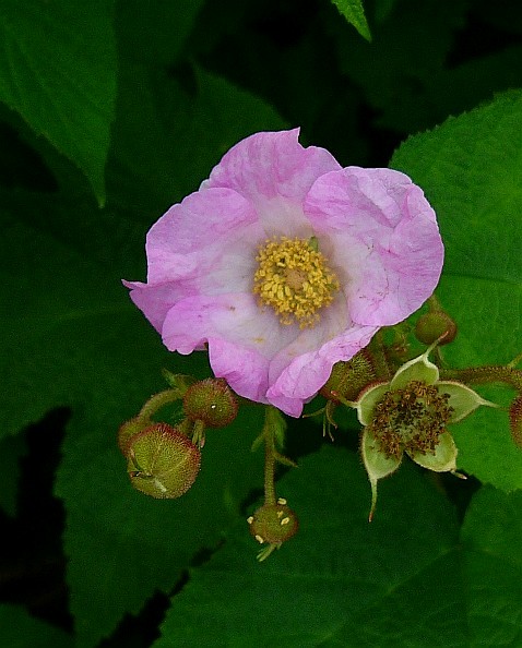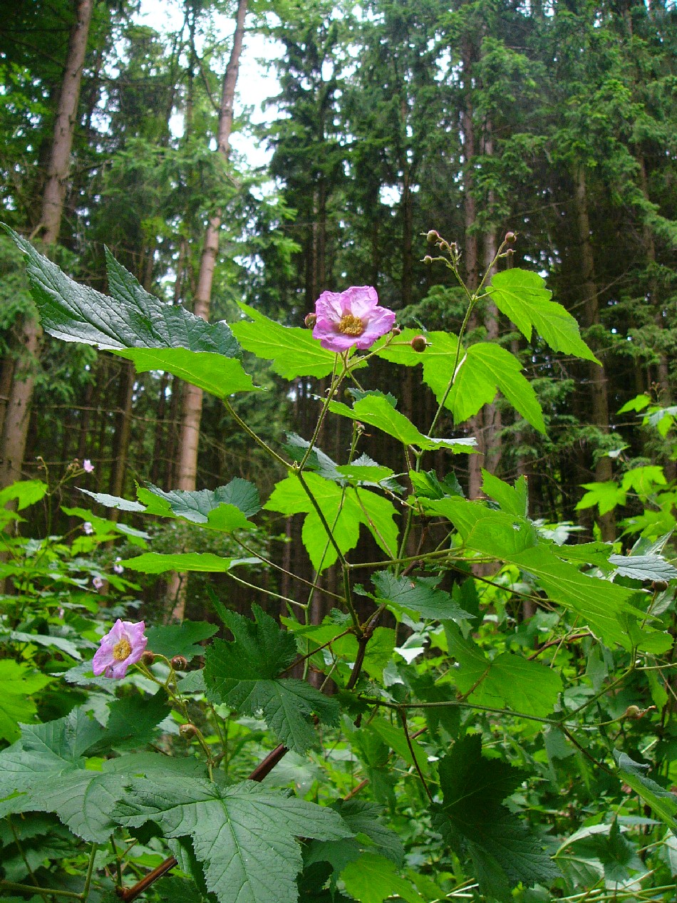 Rubus- Stängel ohne Stacheln, Blätter gelappt