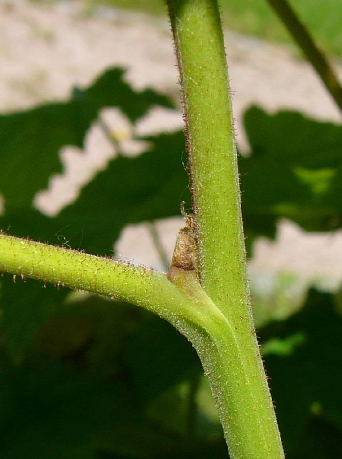 Blätter fünflappig, Blattlappen zugspitzt Blätter ober- und unterseits behaart Blattstiel und Blattnerven unterseits drüsig Stängel nur mit langen Drüsenhaaren, ohne Stacheln