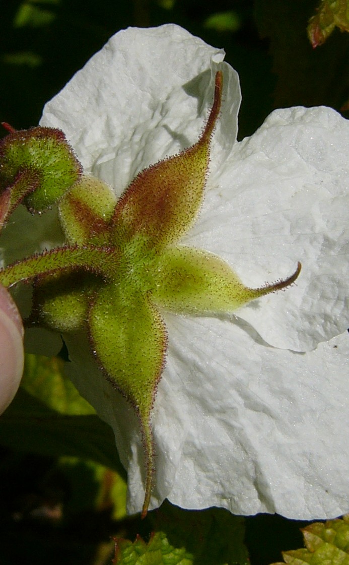 2 Blüten hellrosa oder weiß, Kelchblätter grauhaarig