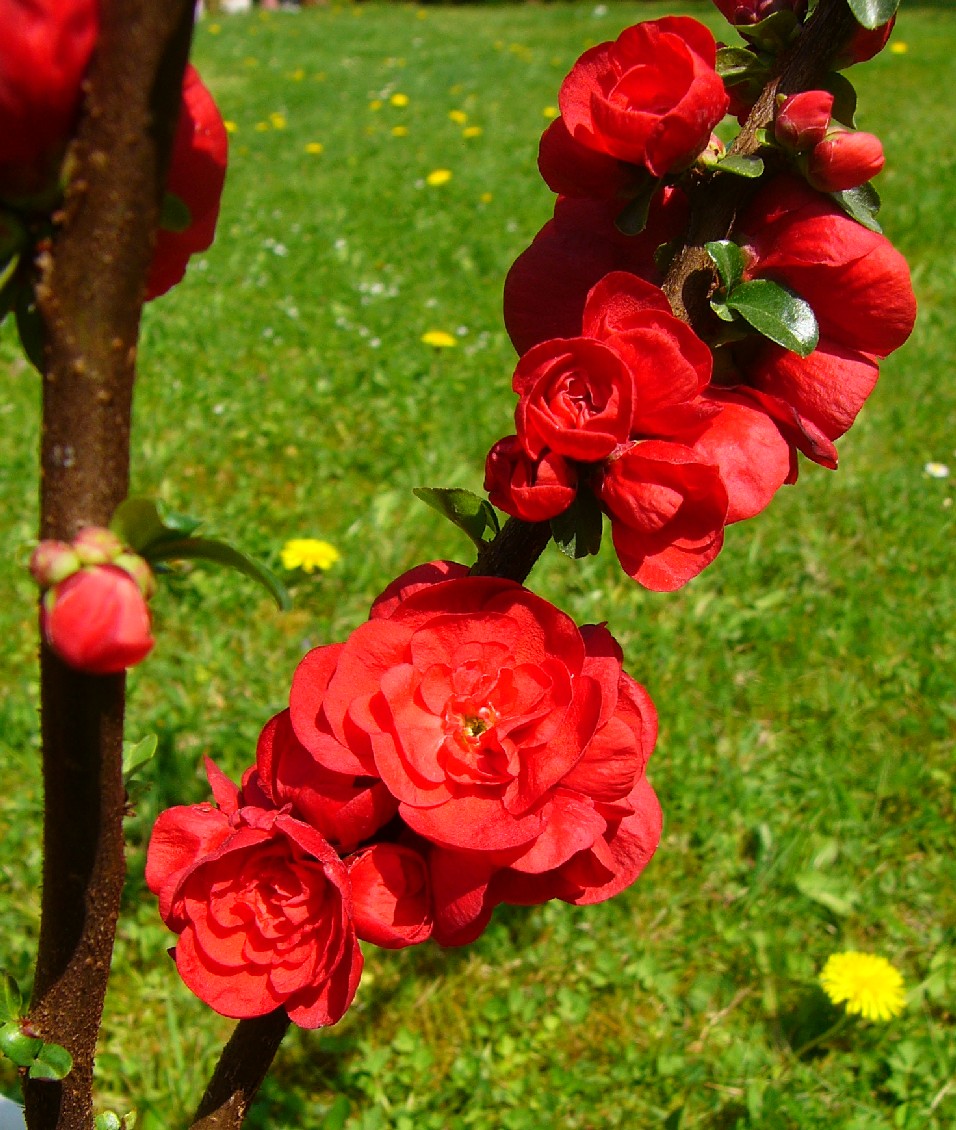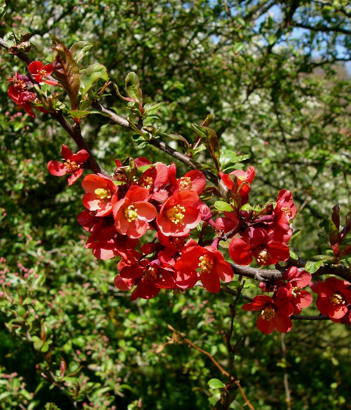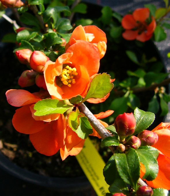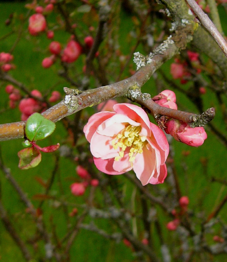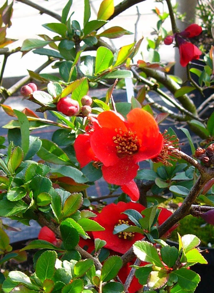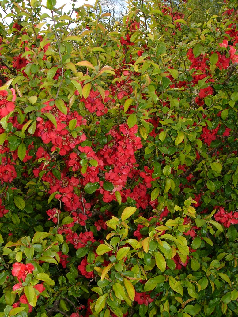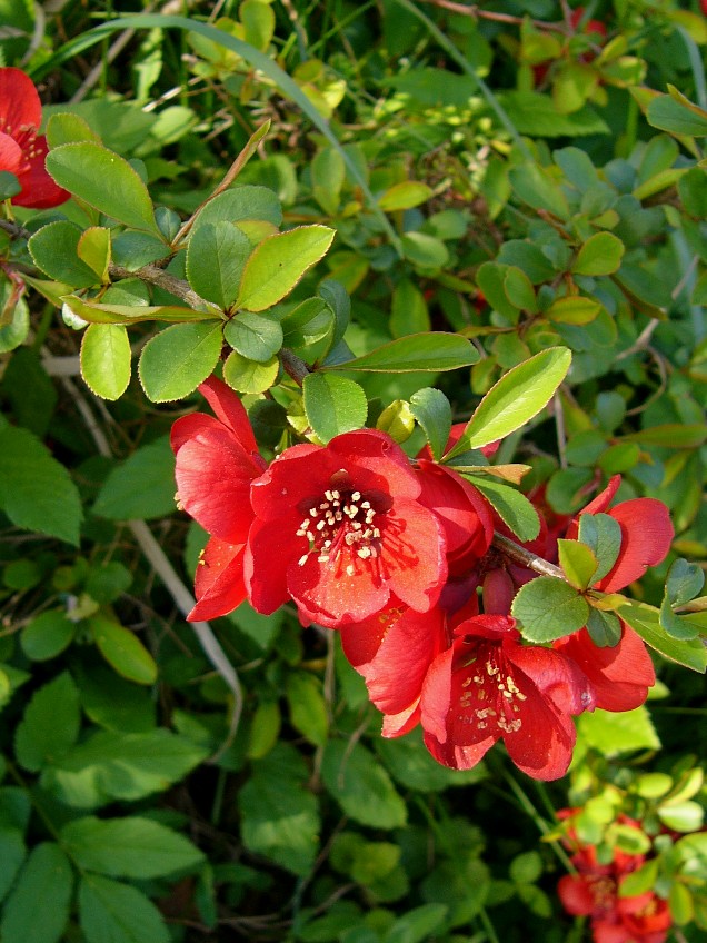 III - V, Ziergehölz Bastard C. speciosa x japonica. Der Bastard wird wesentlich häufiger gepflanzt als die Elternarten. Synonyme: English name: Verbreitung in Deutschland: Gefährdung in Deutschland: Weltweite Verbreitung: Viele Sorten z.B. 'Scarlet Storm': Blüten rot, gefüllt 'Crimson and Gold' 'Apricot':