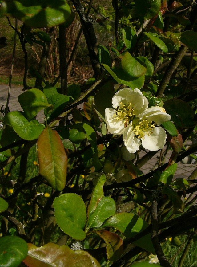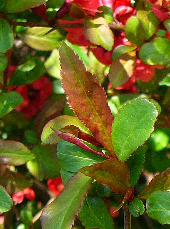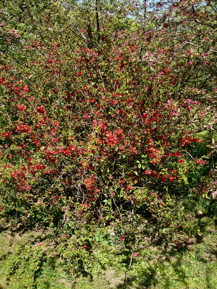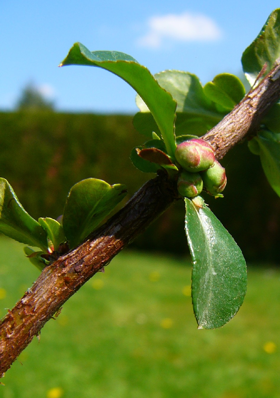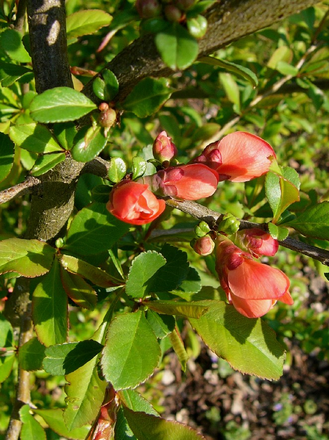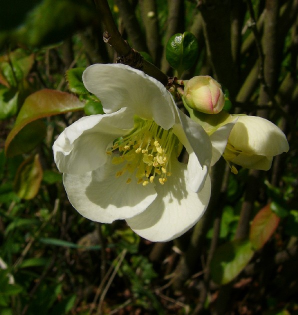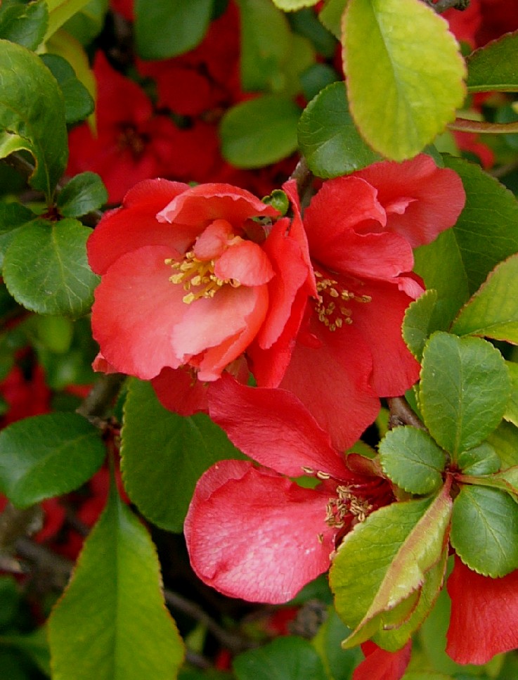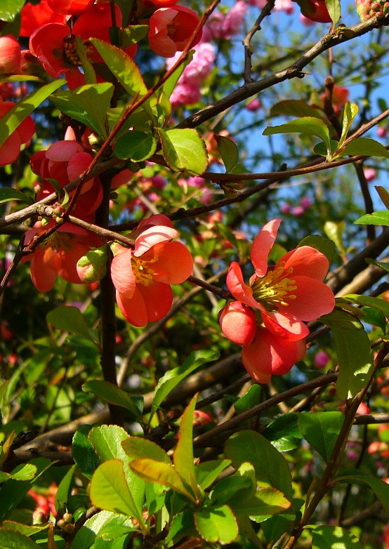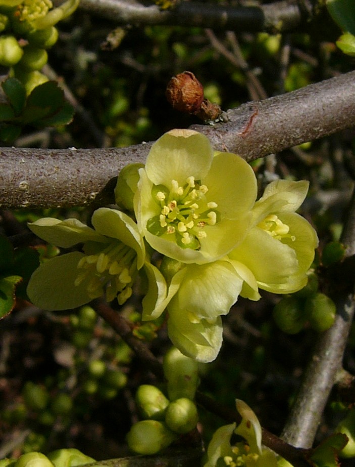 III - V, Ziergehölz Bastard C. speciosa x japonica. Der Bastard wird wesentlich häufiger gepflanzt als die Elternarten. Synonyme: English name: Verbreitung in Deutschland: Gefährdung in Deutschland: Weltweite Verbreitung: Viele Sorten z.B. 'Scarlet Storm': Blüten rot, gefüllt 'Crimson and Gold' 'Apricot':
