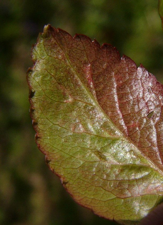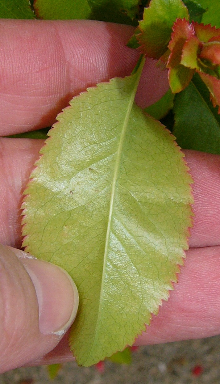 Blätter länglich, vorne zugespitzt Blattunterseite kahl, glänzend Triebe kahl,