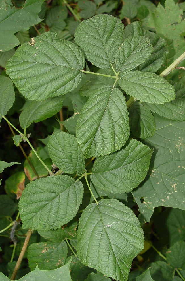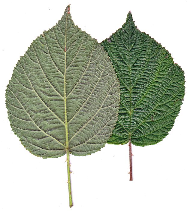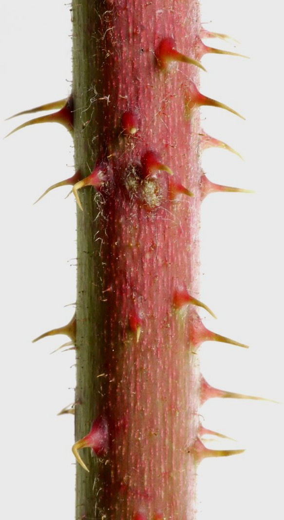 Endblättchen rundlich, Blätter unterseits weichhaarig, oft etwas filzig Blattstiel mit 5 - 9 geraden Stacheln Schössling kantig, kahl, stieldrüsenlos,