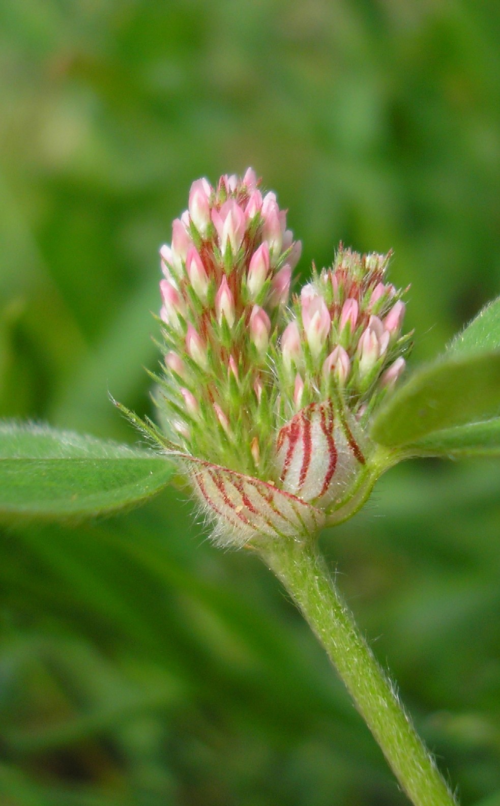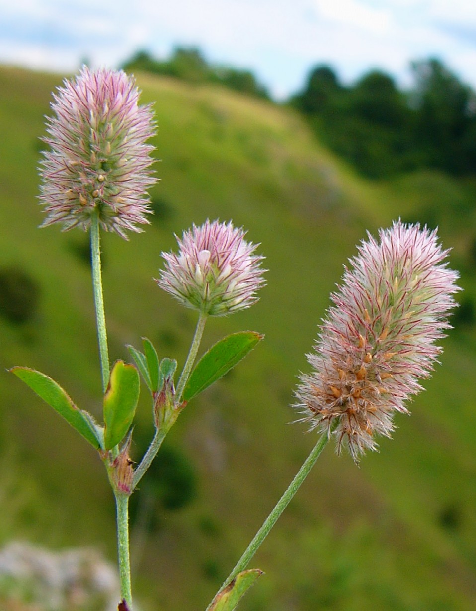 Klee - weiß, hellgelb oder rosa, Blütenstand vielblütig, Kelch länger als die Blüten