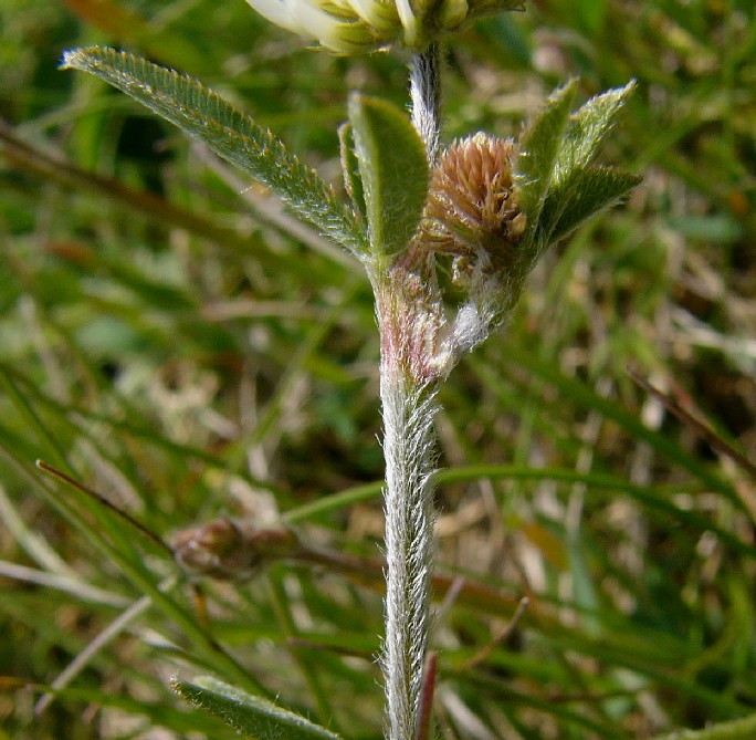 Klee - Blüten weiß, Blütenstand vielblütig, gestielt, eiförmig oder kugelig, Kelch nicht aufgeblasen, Blätter behaart
