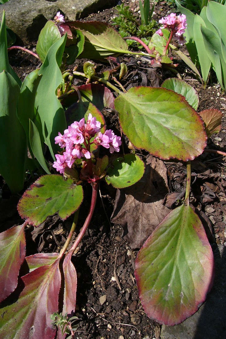IV - V, Rabatten, Gärten Synonyme: English name: Nome italiano: Verbreitung in Deutschland: Gefährdung in Deutschland: Weltweite Verbreitung: Eingebürgert in: Etymologie: Häufige Zierpflanze! Sorten: 'Herbstblüte': Blüht im Herbst ein zweites Mal Bergenia cordifolia bildet Hybriden mit Bergenia crassifolia, Bergenia purpurascens und Bergenia ciliata.