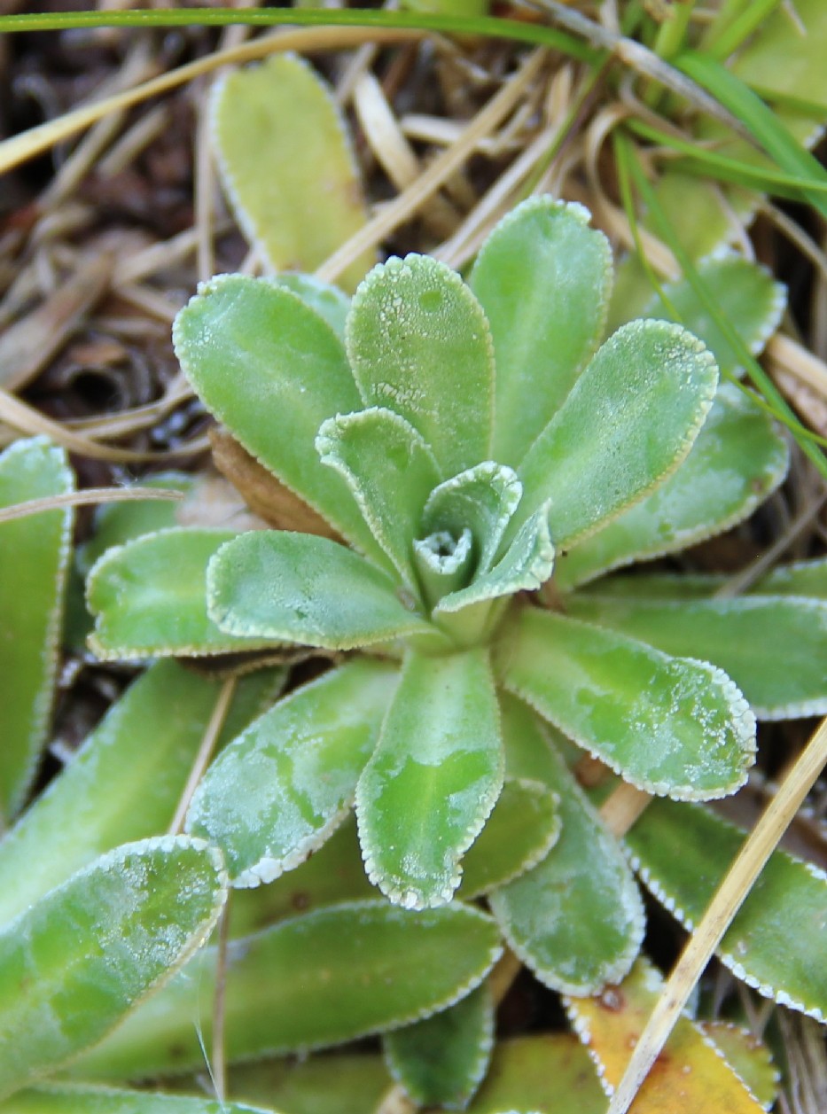 2 Rosettenblätter eiförmig, nach vorne zu deutlich verbreitert, vorn abgerundet