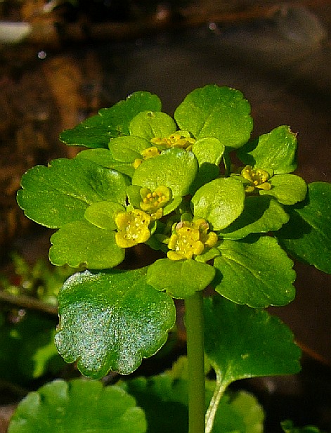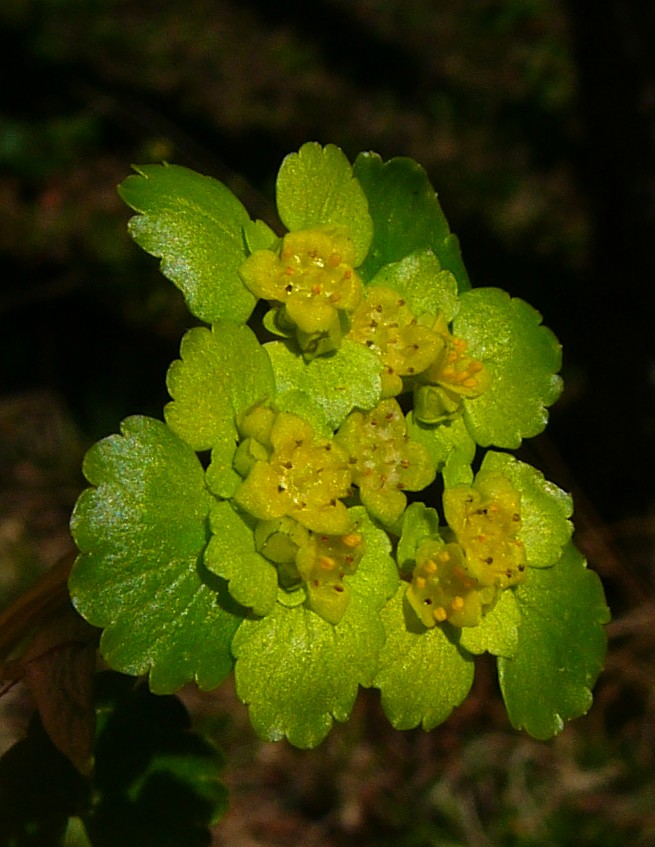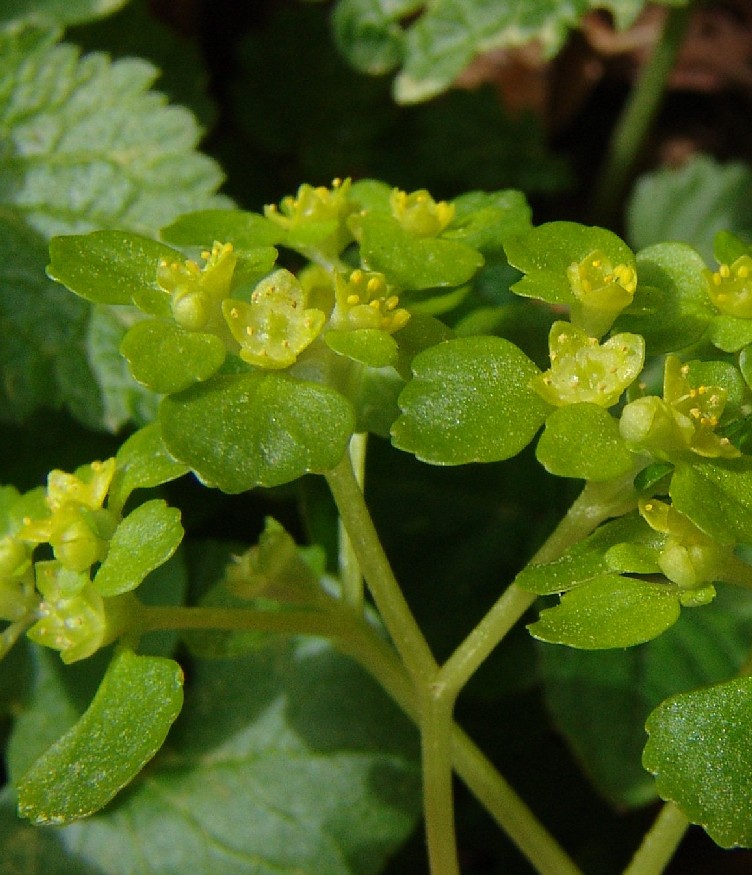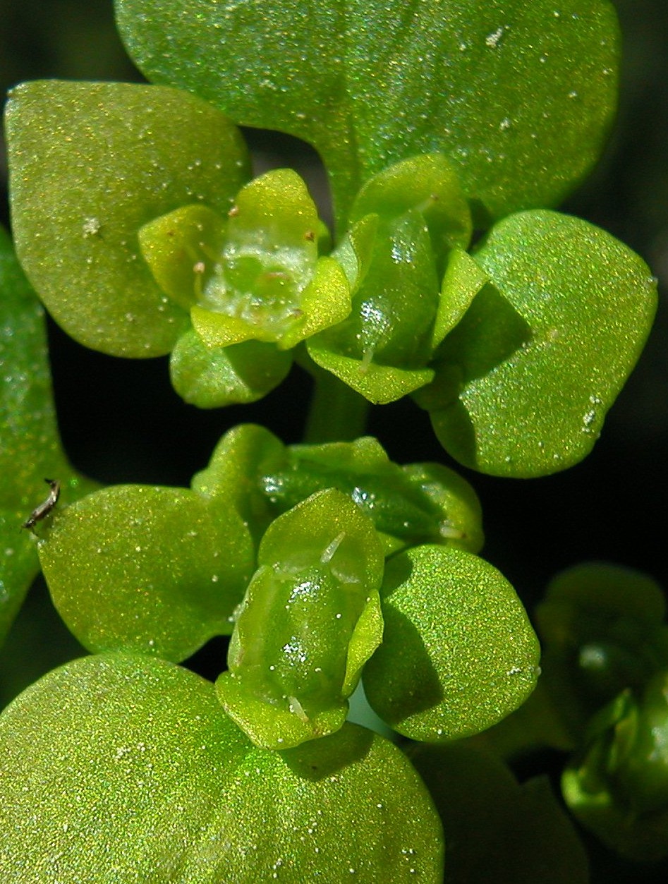 Pflanze 15 - 20 cm groß Blüten zur Blütezeit gelblich, ca. 5 mm im Durchmesser, ohne Kronblätter, Kelch 4- blättrig, 8 Staubblätter, 2 im unteren Teil verwachsen Fruchtblätter, 2 Griffel Blüten von gelblich- grünen Hochblättern umgeben Hochblätter unterseits kahl Kelch zur Fruchtzeit +/- grünlich
