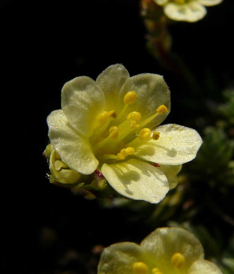 Steinbrech - Blüten zu 1 - 10, cremefarben oder gelb oder orange, harte Polster bildend, Blätter linealisch
