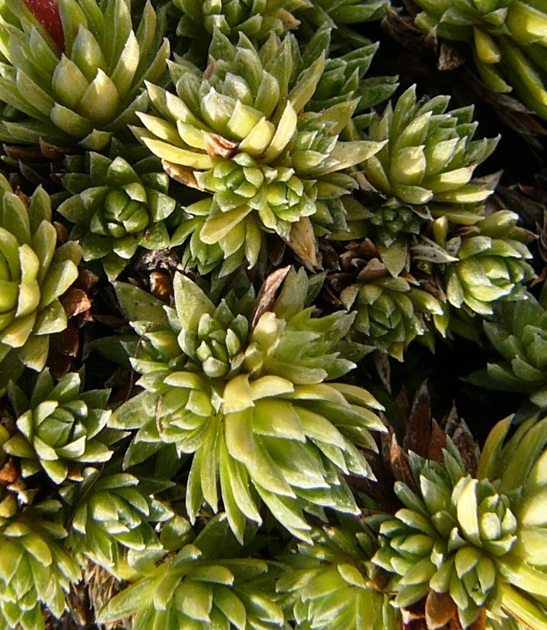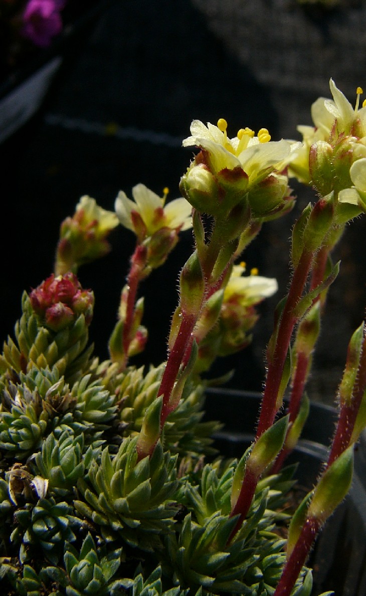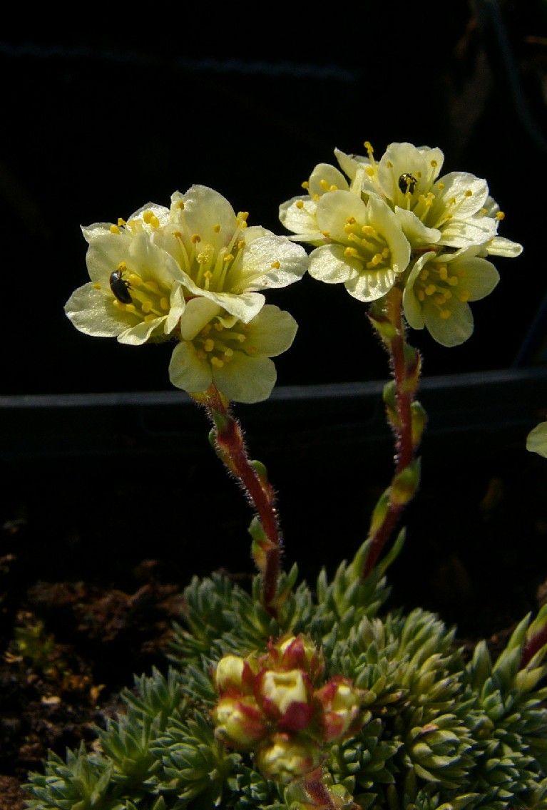 III - IV, Steingärten Hybride Saxifraga burseriana (Blüten weiß) x Saxifraga sancta (Blüten goldgelb) Synonyme: English