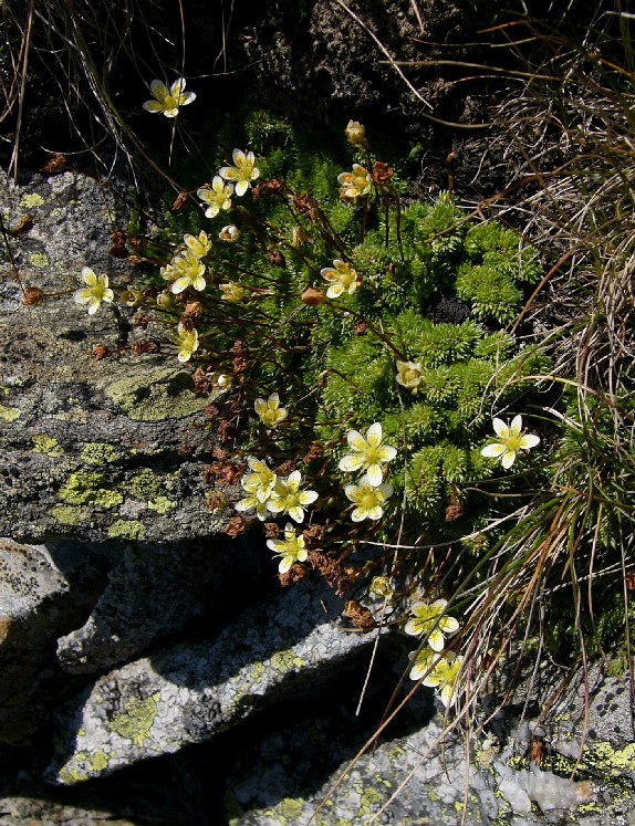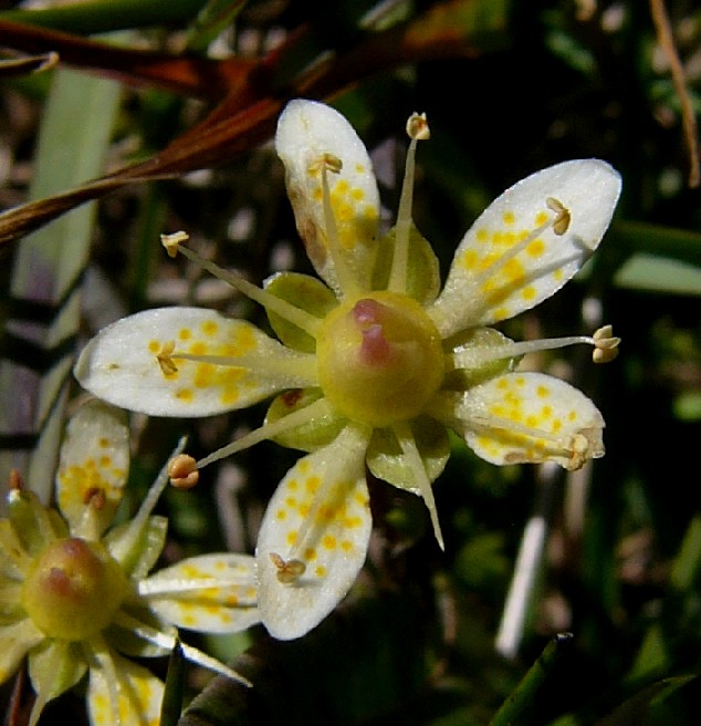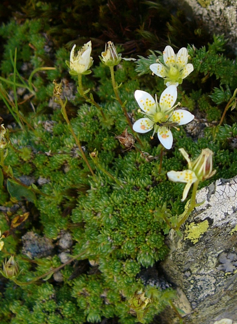 Steinbrech - Blüten weiß, mit gelben Punkten, Blätter linealisch, weich, nicht kalkausscheidend