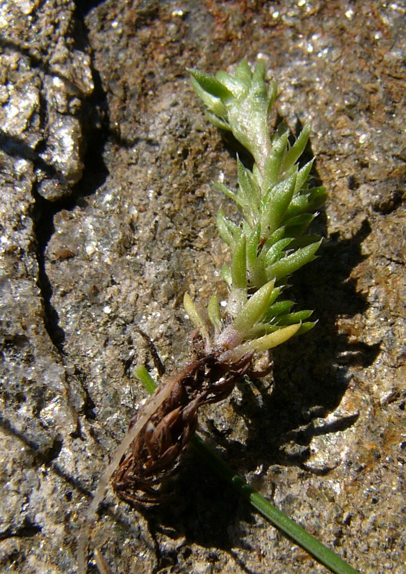 Grundblätter dichte, flache Polster bildend Blüten meist einzeln, Stängelblätter 1 - 4 mm lang > 1 |