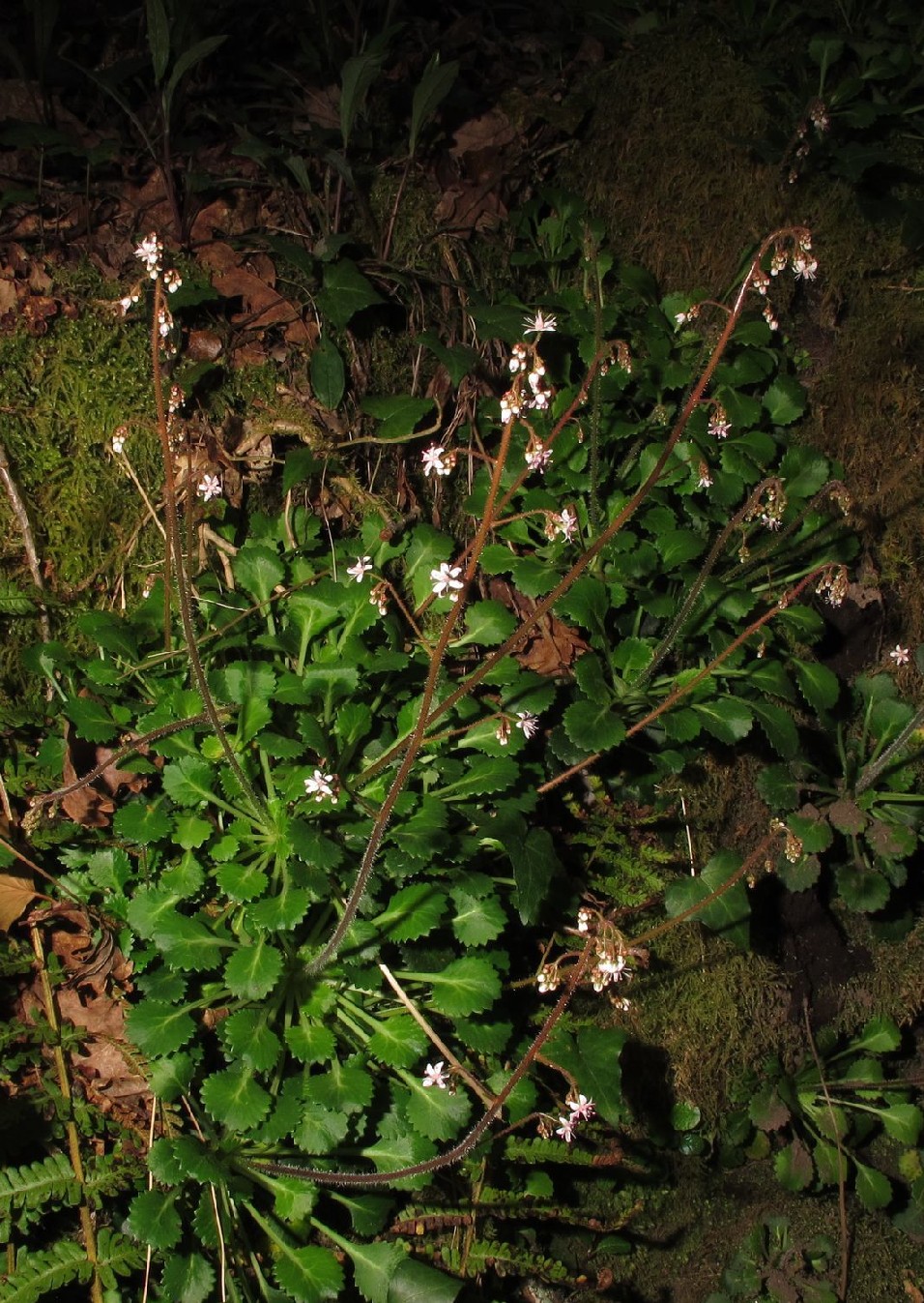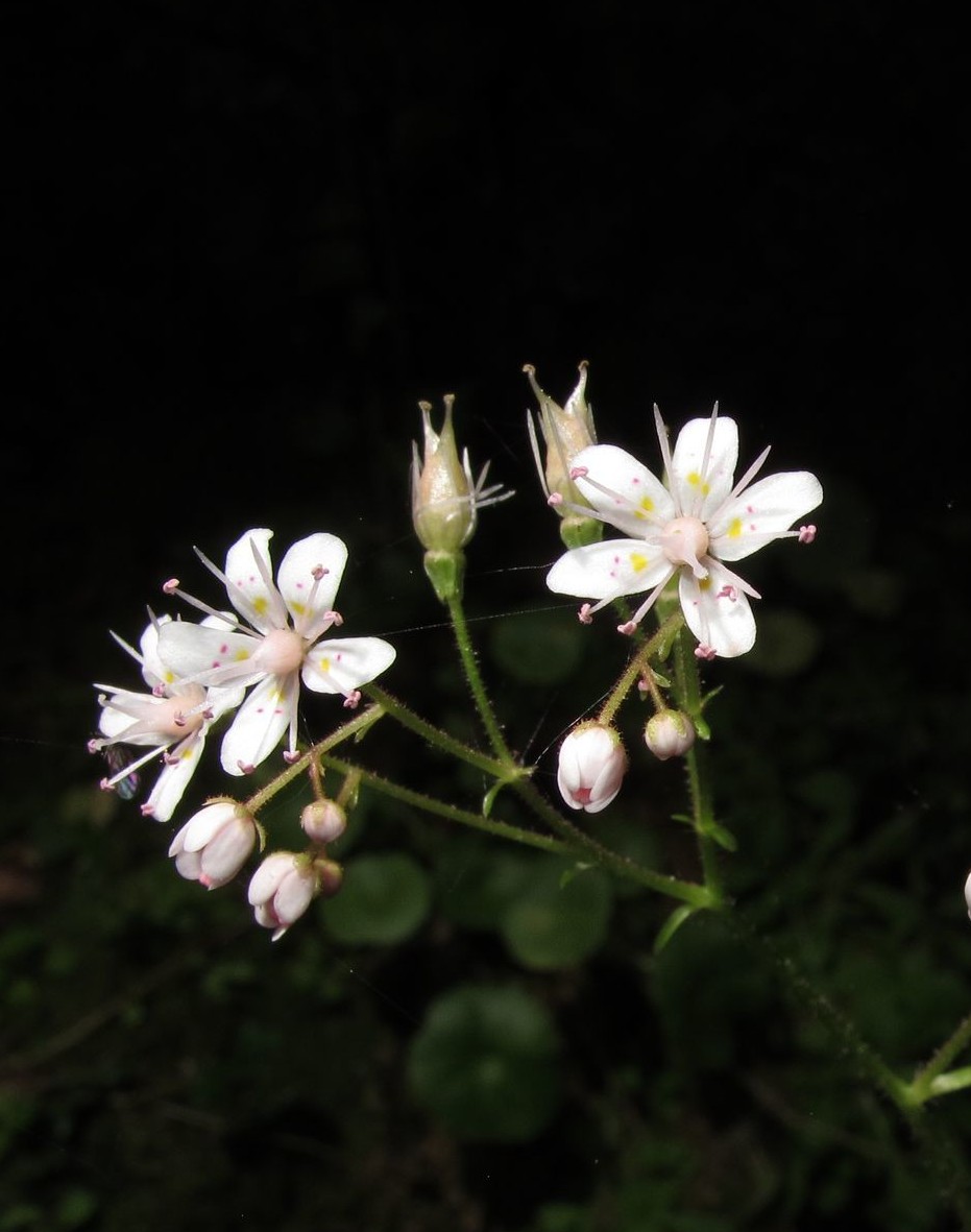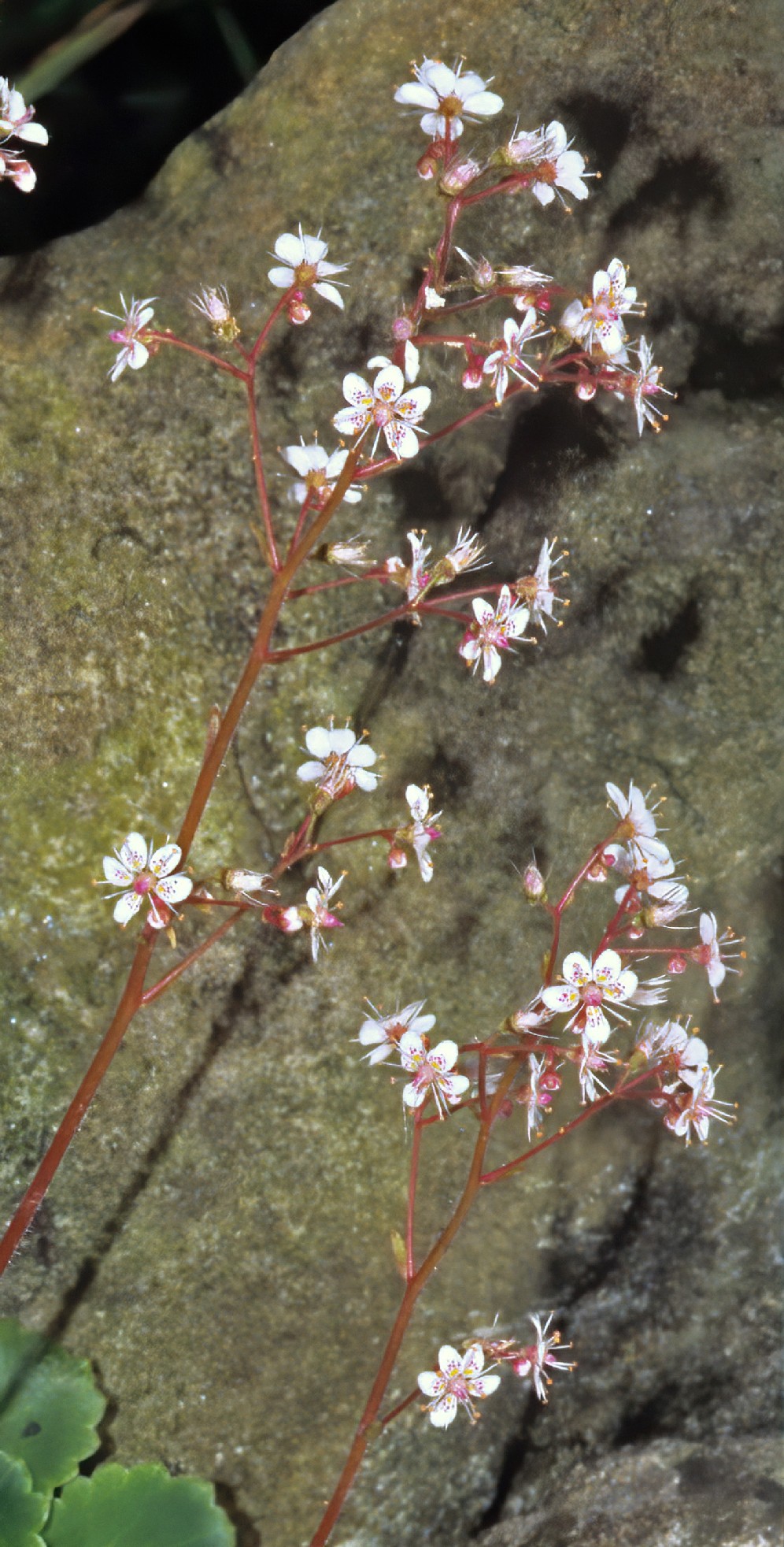 Steinbrech - Blüten weiß, mit Punkten, Blätter weich, am Grund keilig, nicht kalkausscheidend, deutlich gekerbt