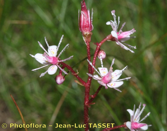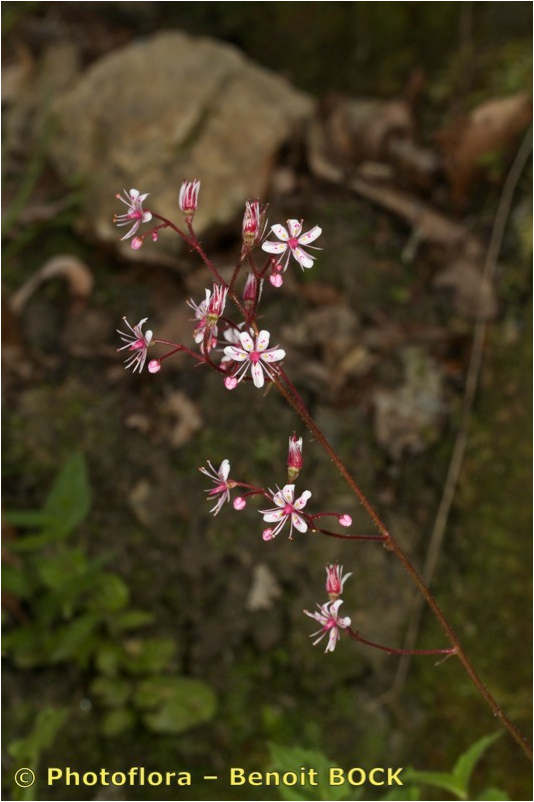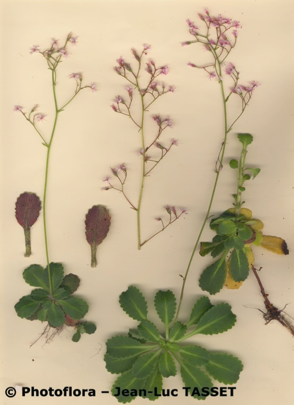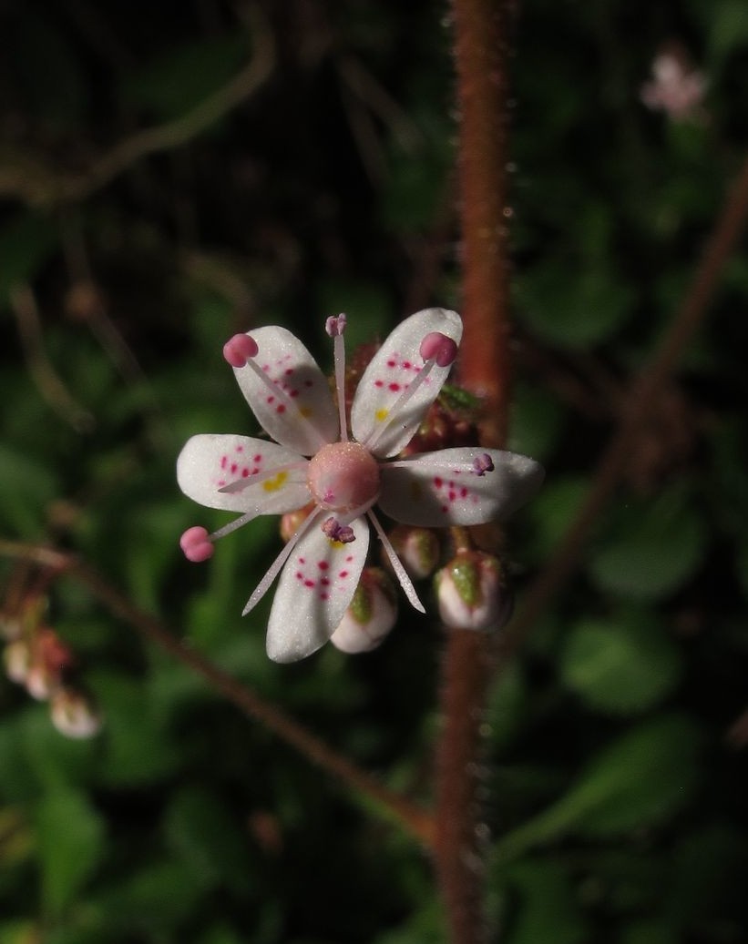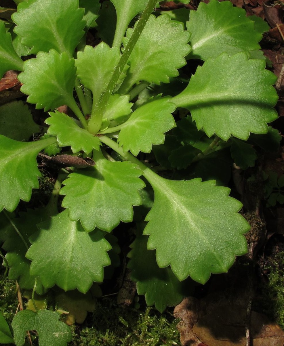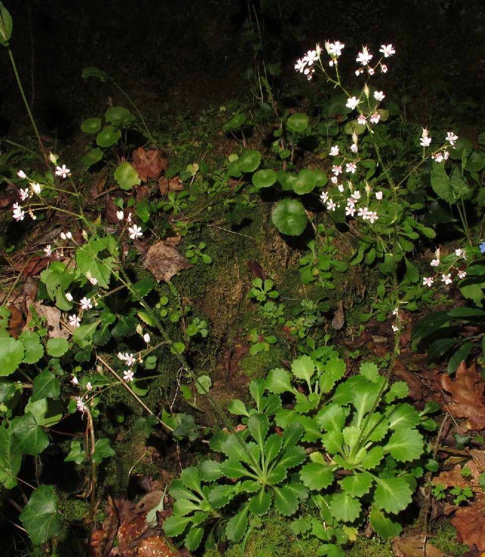 Steinbrech - Blüten weiß, mit Punkten, Blätter weich, am Grund keilig, nicht kalkausscheidend, deutlich gekerbt