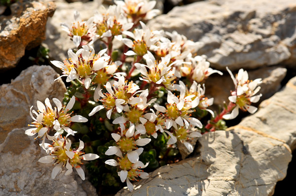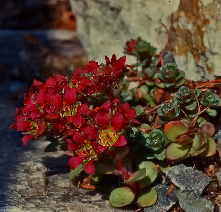 Steinbrech - Blüten rot oder rosa, Stängel 1 - 5- blütig