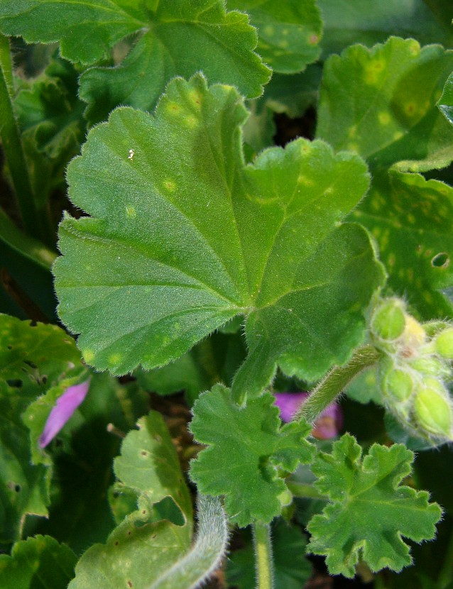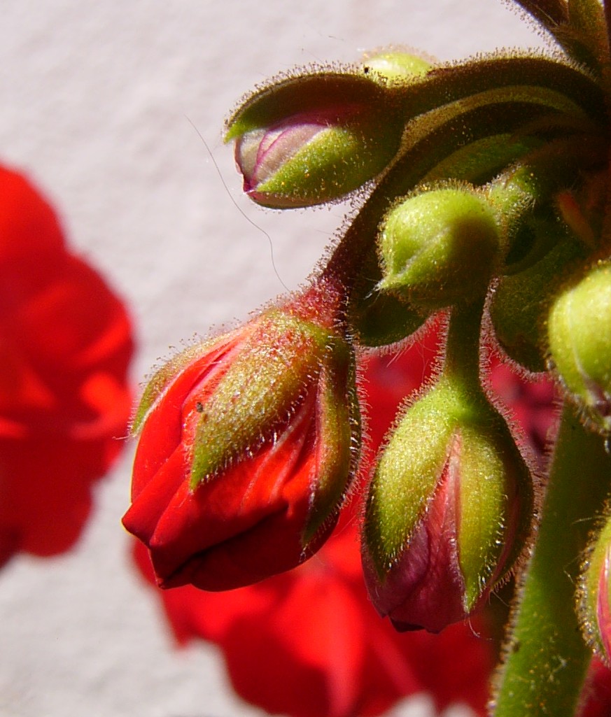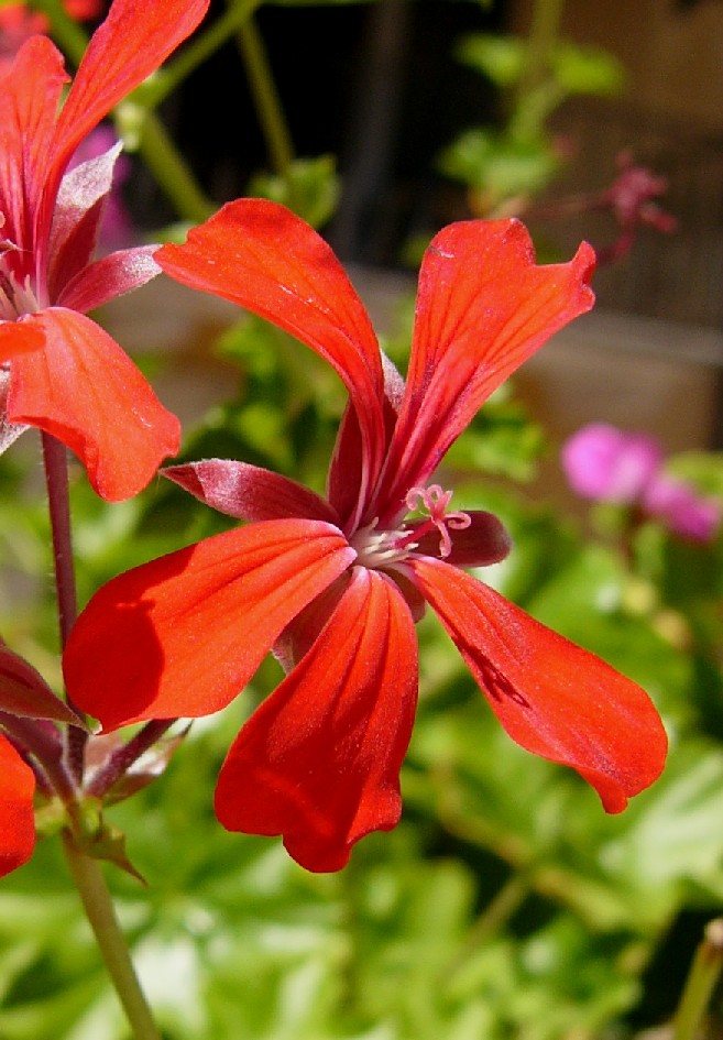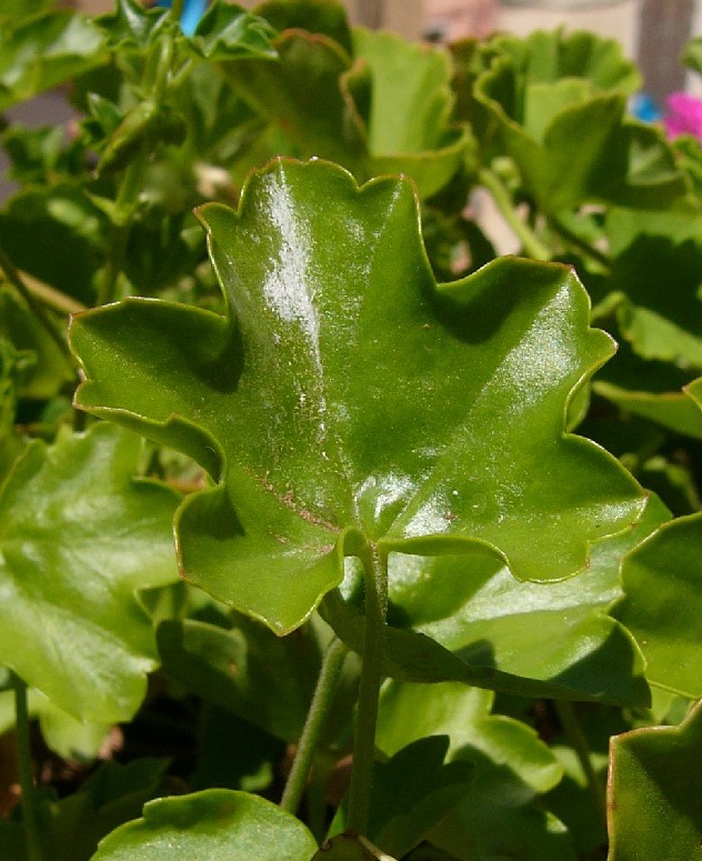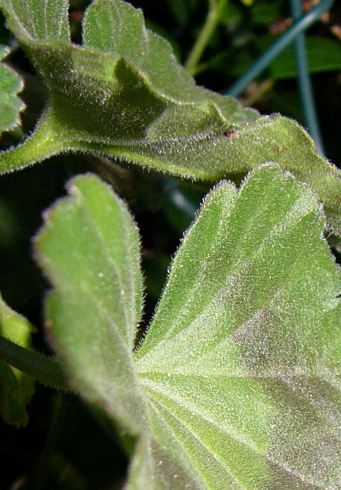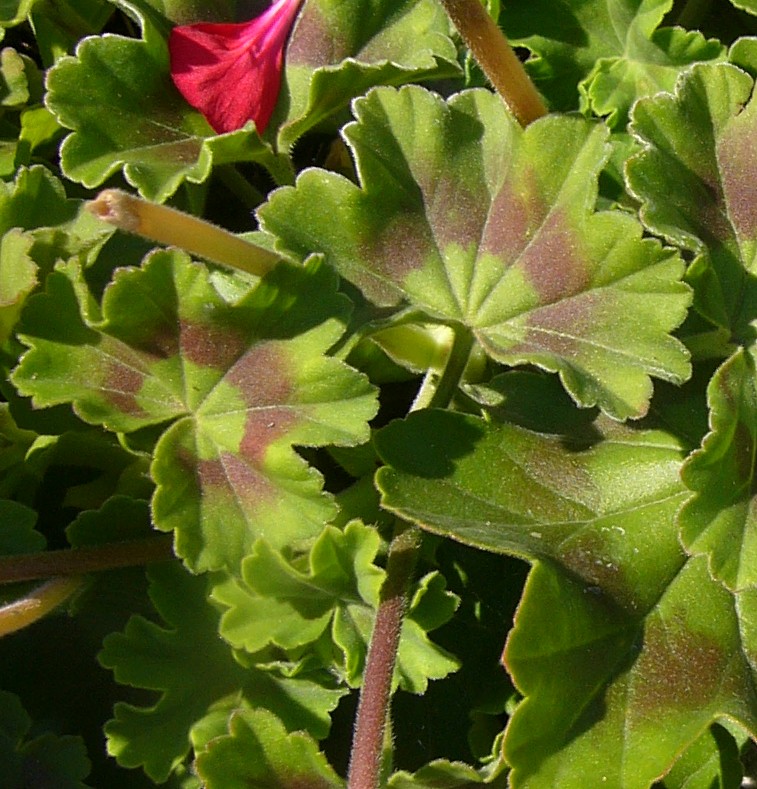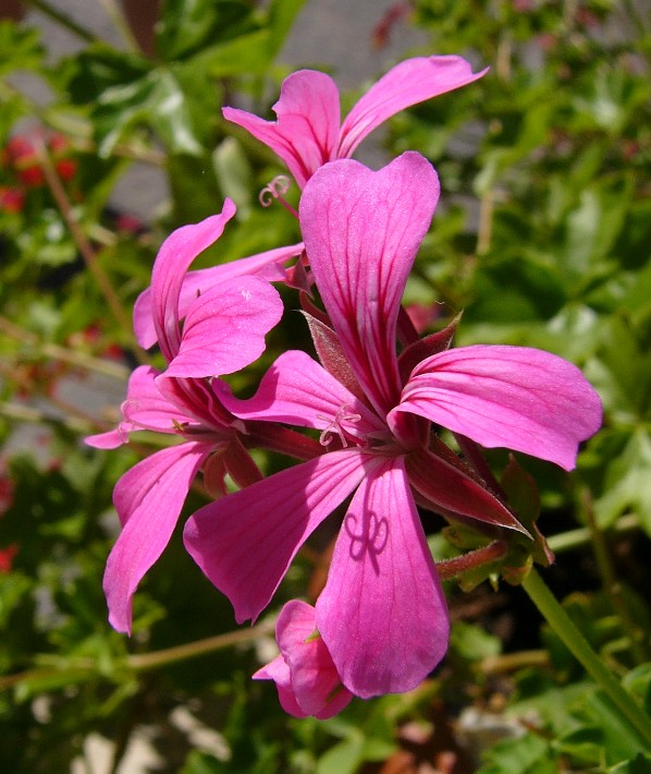Pflanzen 30 - 60 cm groß Blüten rot, lachsfarben oder weiß+/- zygomorph Kelchblätter frei, drüsig behaart Fruchtschnäbel kurz Stängel fleischig, nur an der Basis verholzt Blätter gelappt, nicht fleischig, mit einem +/- braunen Ring Blätter unterseits weich behaart