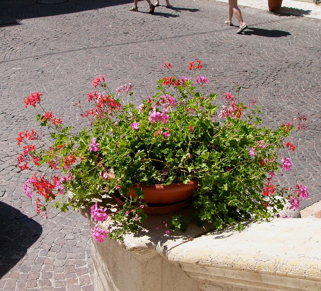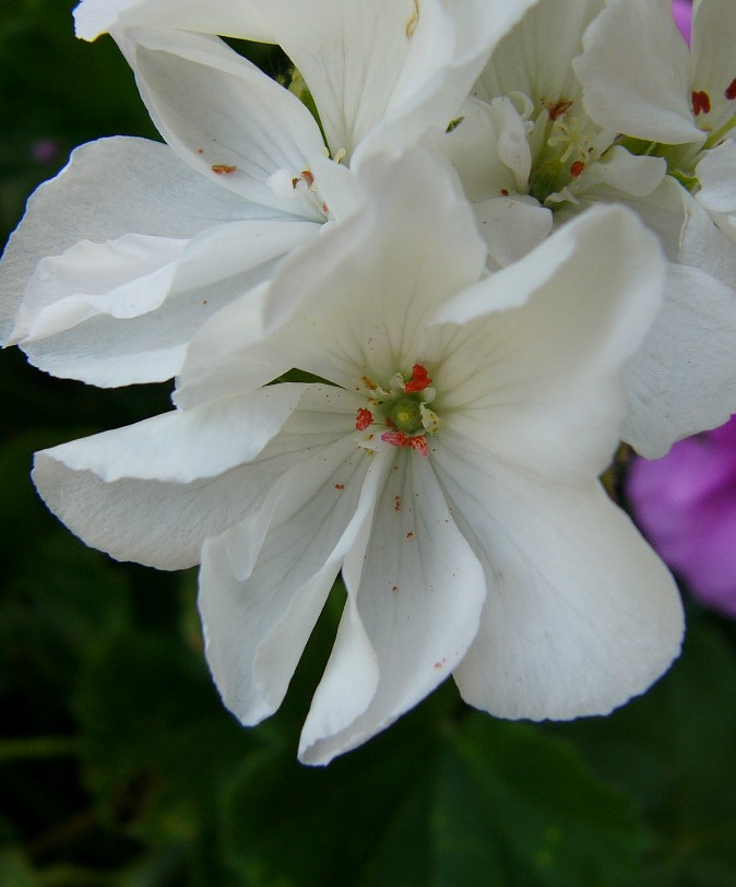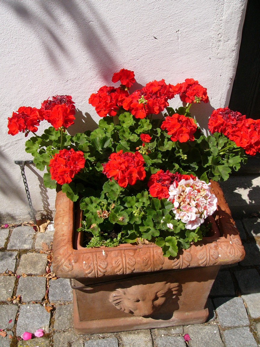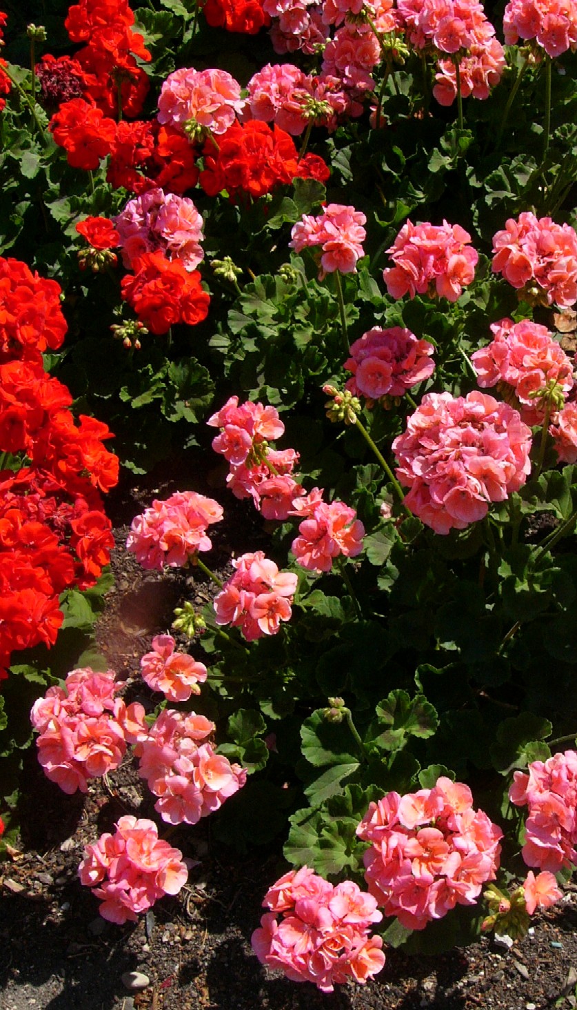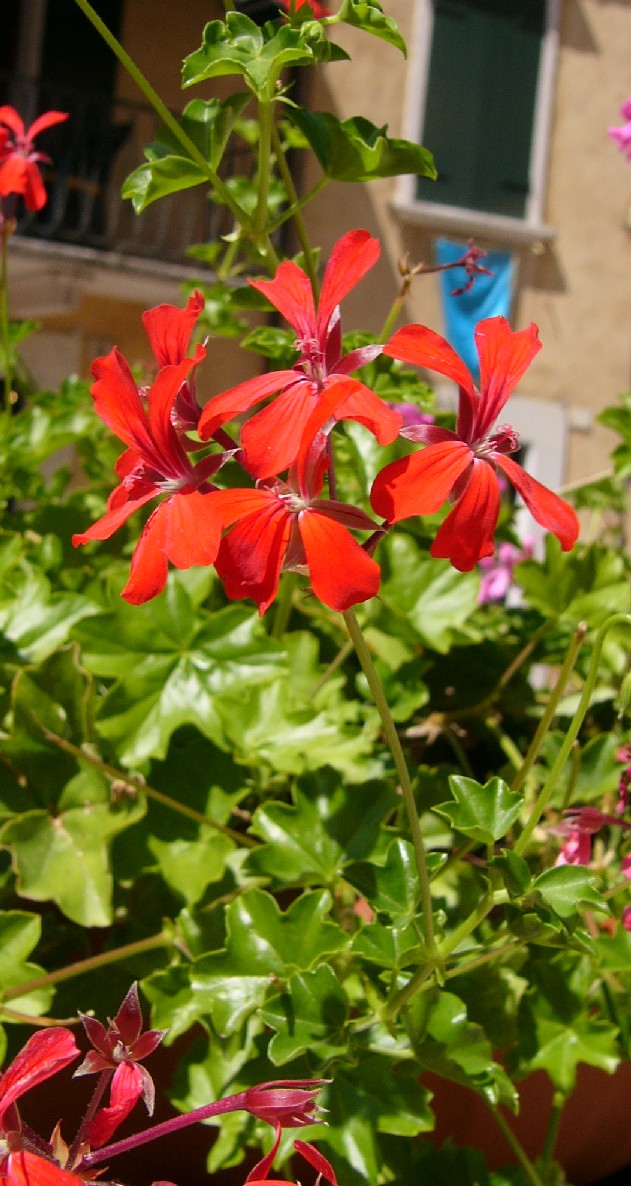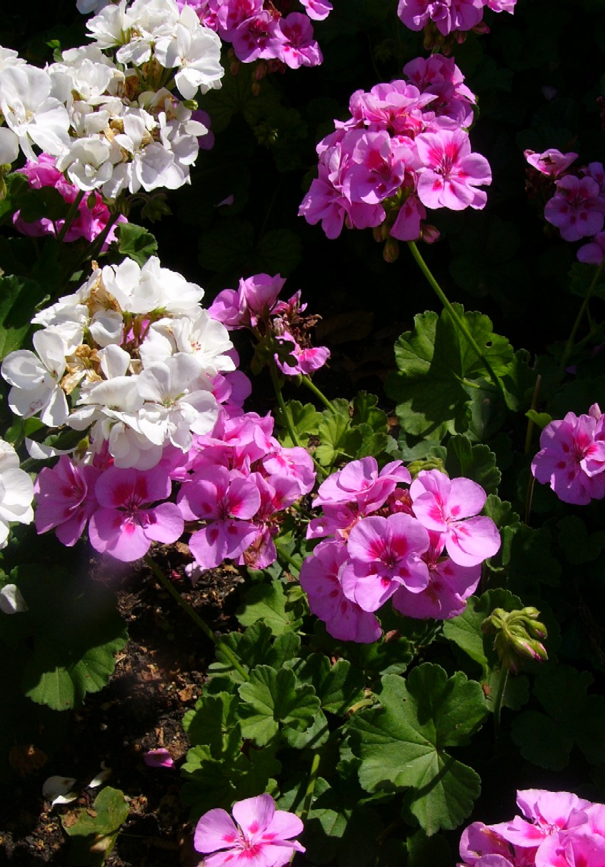 Pflanzen 30 - 60 cm groß Blüten rot, lachsfarben oder weiß+/- zygomorph Kelchblätter frei, drüsig behaart Fruchtschnäbel kurz Stängel fleischig, nur an der Basis verholzt Blätter gelappt, nicht fleischig, mit einem +/- braunen Ring Blätter unterseits weich behaart
