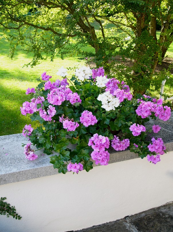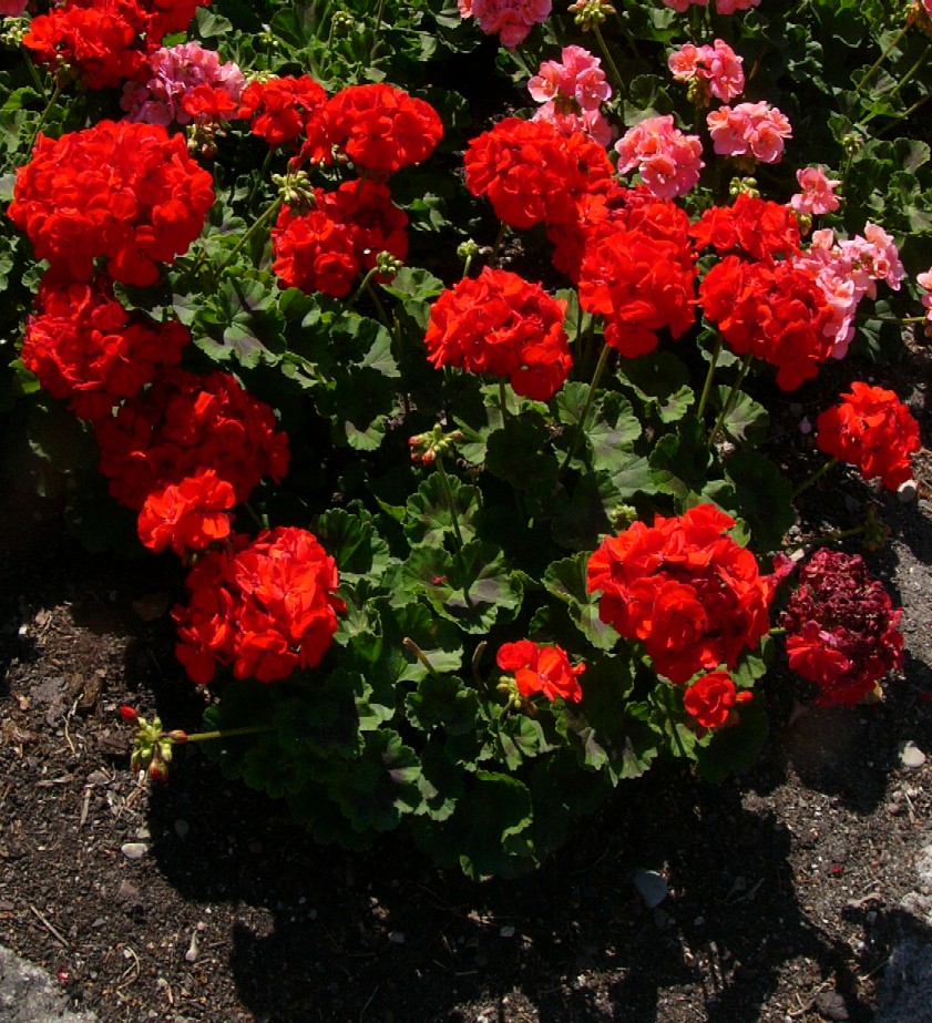 Pflanzen 30 - 60 cm groß Blüten rot, violett, weiß, häufig auch 2-farbig, +/- zygomorph, oft gefüllt oder halb gefüllt Fruchtschnäbel kurz Stängel verholzt Blätter gelappt, nicht fleischig Blätter unterseits weich behaart