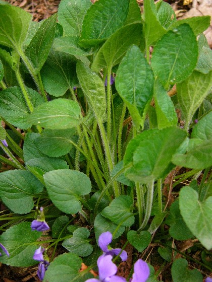 Nebenblätter breit eiförmig (3 - 4 mm breit), 1 - 4 mal so lang wie breit, kurz gefranst Blätter in etwa so lang wie breit, am Grund tief ausgebuchtet, vorne stumpf, oft glänzend Blätter im Austrieb unterseits behaart Blätter unterseits, später verkahlend, glänzend, spärlich behaart Pflanze mit langen (bis 50 cm) oberirdischen Ausläufern, Ausläufer wurzelnd, erst im 2. Jahr Blüten bildend (in der Mitte die Pflanze vom letzten Jahr) (Nur Viola odorata, Viola suavis und Viola alba bilden Ausläufer!)