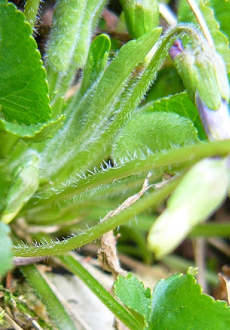Veilchen - Blüten blau/violett, seitliche Kronblätter abwärts gerichtet, Kelchblätter stumpf, Blätter so lang oder länger als breit