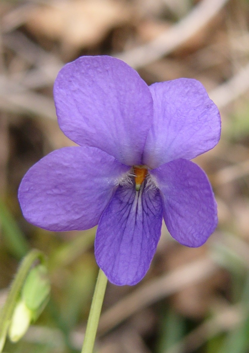 Veilchen - Blüten hellviolett, nicht gefleckt, seitliche Kronblätter abwärts gerichtet, Kelchblätter stumpf, Blätter länger als breit, Blüten-, Blattstiele oder Blätter behaart, Nebenblätter mit kurzen, nicht gewimperten Fransen