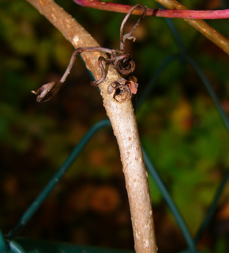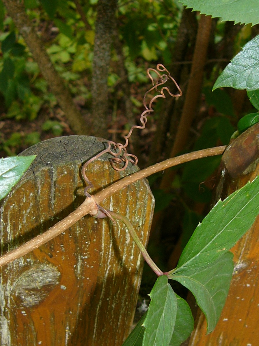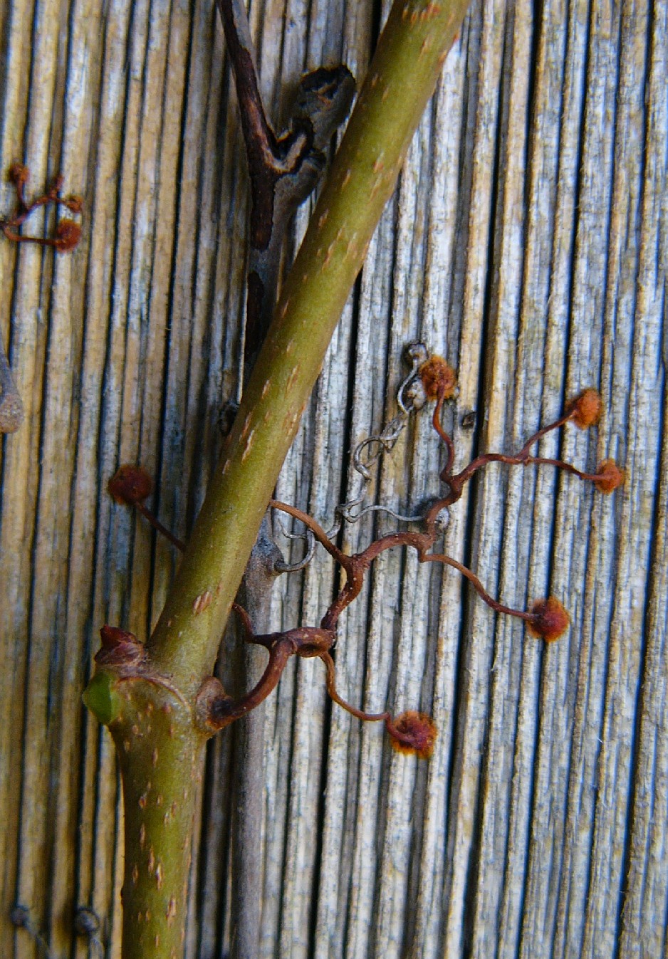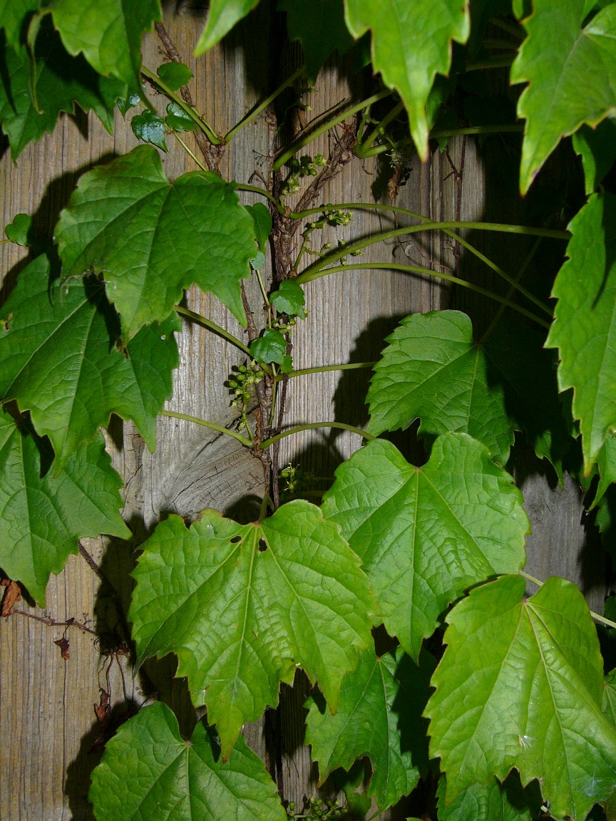 spitz, Blattunterseite glänzend, +/- kahl Zwige verholzt, Rinde älterer Zweige nicht längsfaserig Ranken ohne Haftscheiben; Pflanzen sind auf Rankhilfen angewiesen