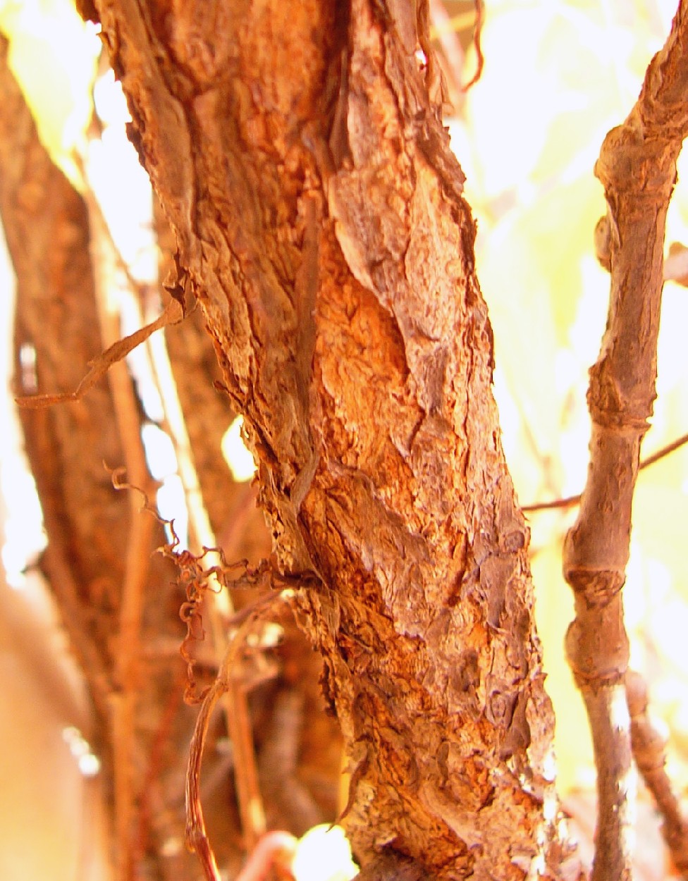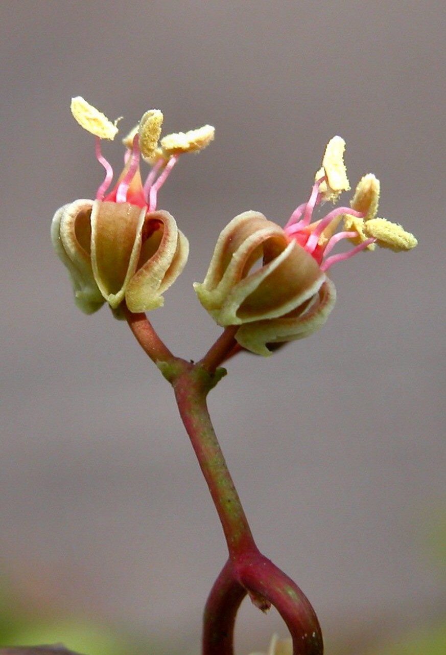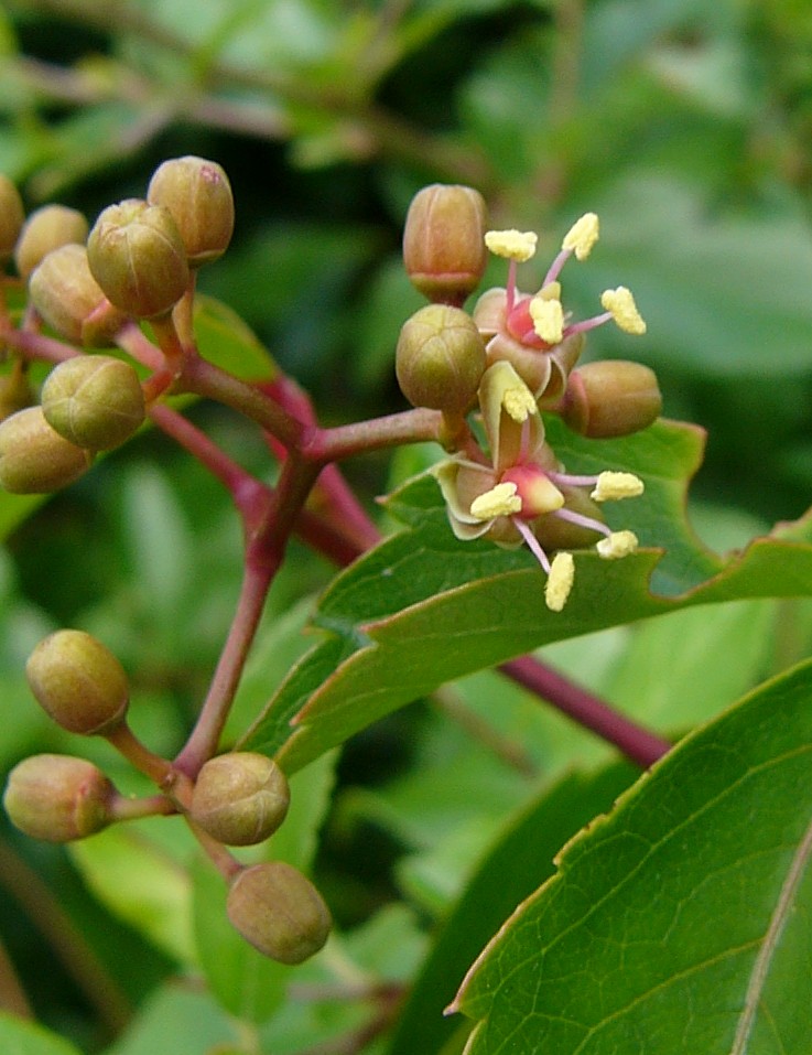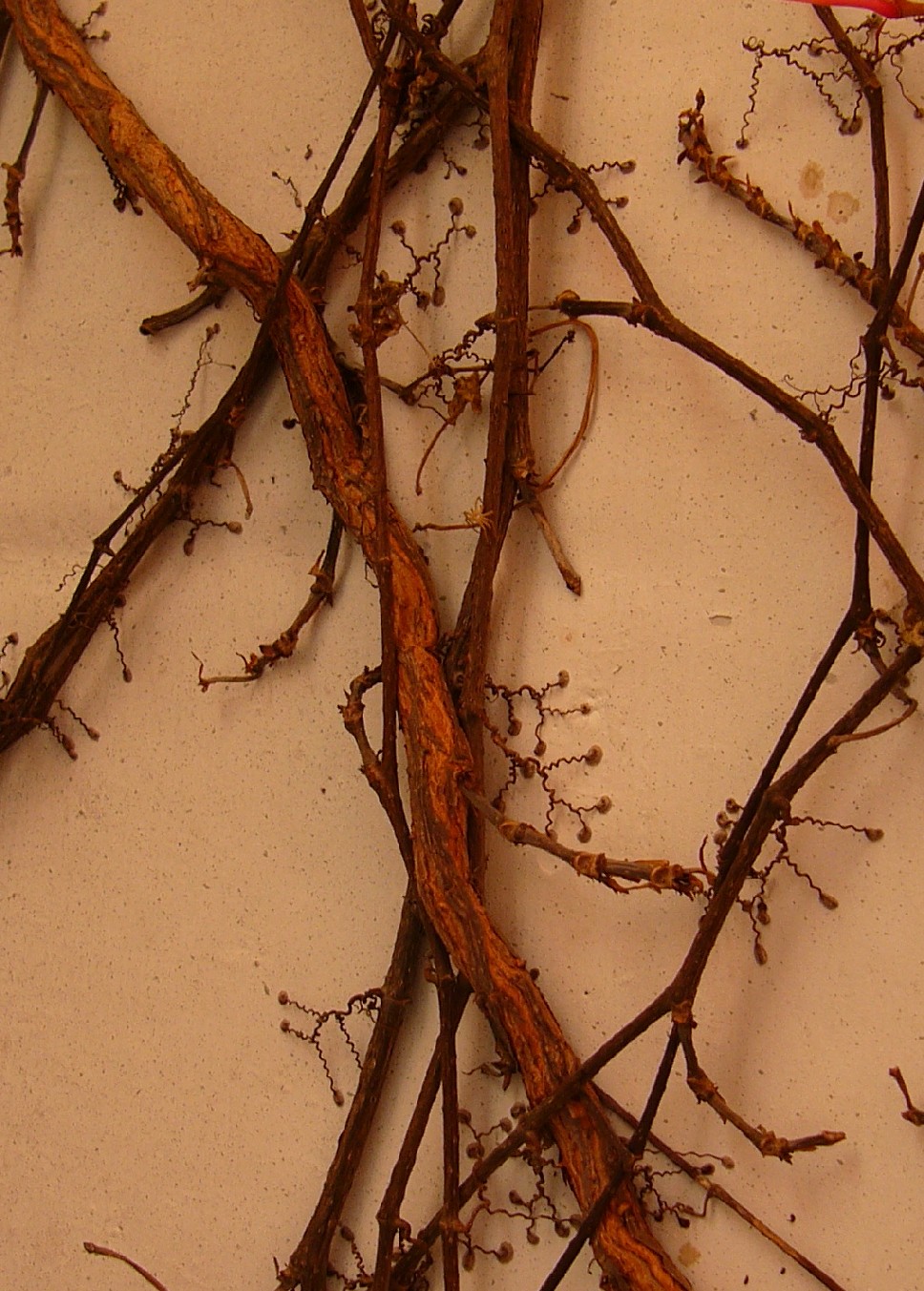 spitz, Blattunterseite glänzend, +/- kahl Zwige verholzt, Rinde älterer Zweige nicht längsfaserig Ranken ohne Haftscheiben; Pflanzen sind auf Rankhilfen angewiesen