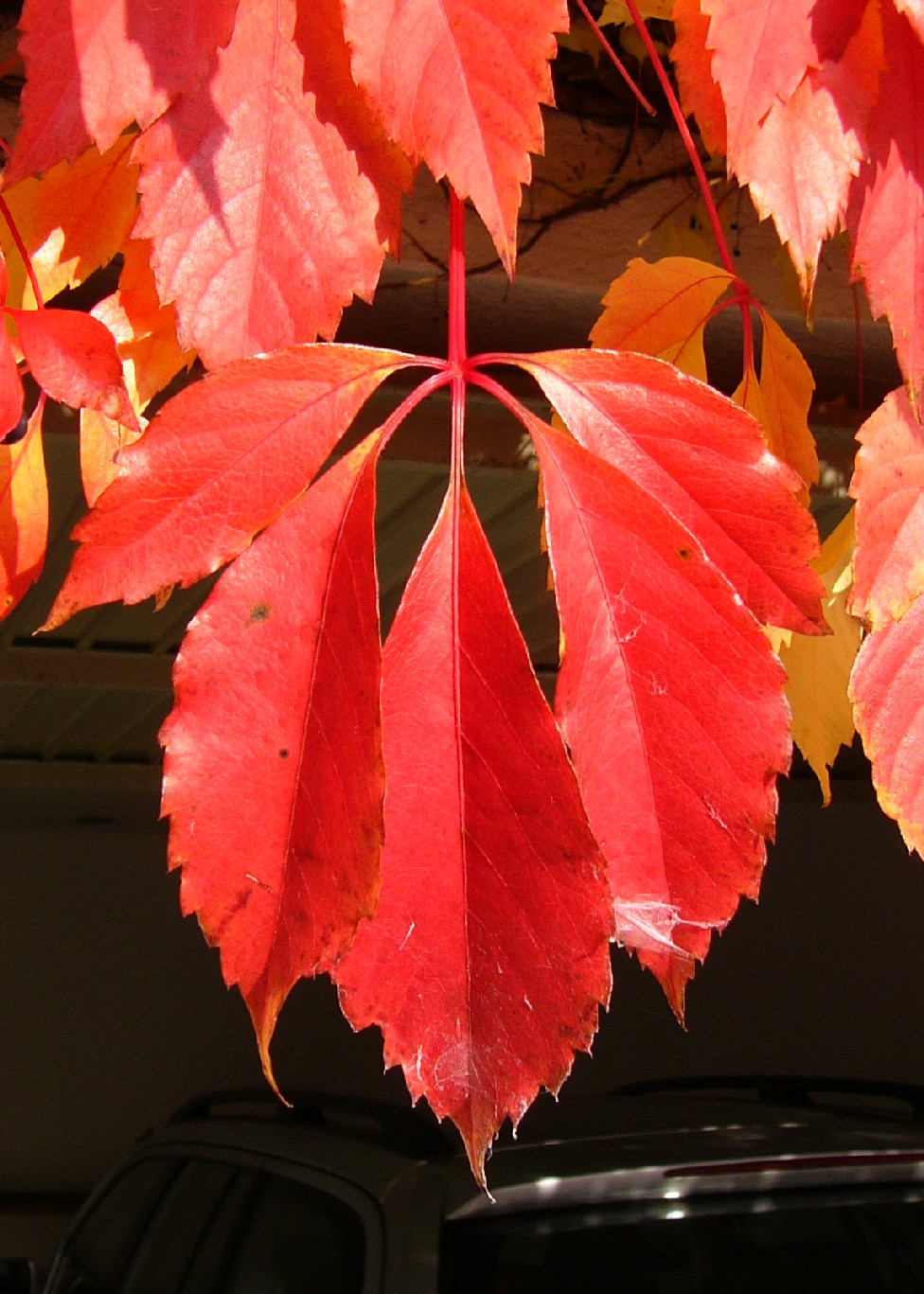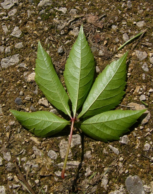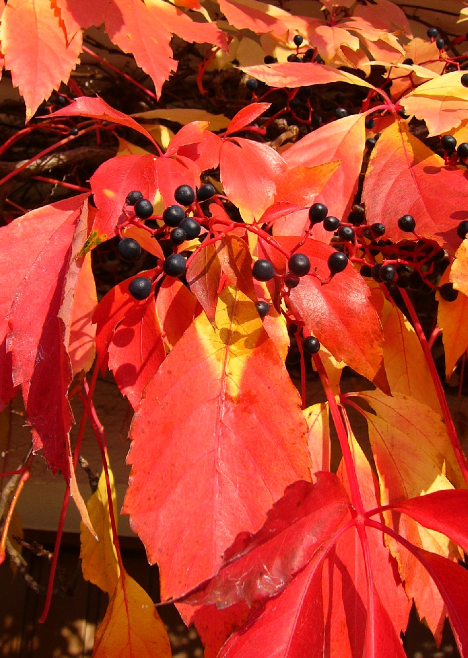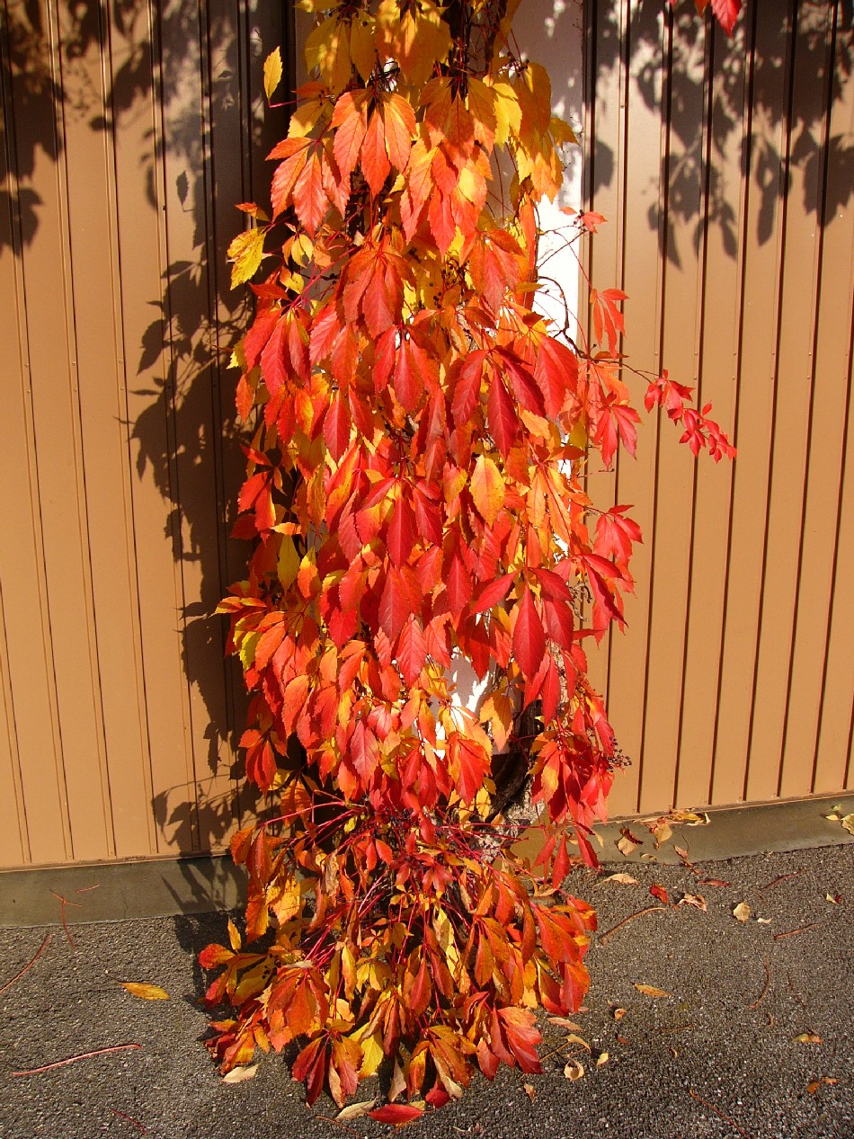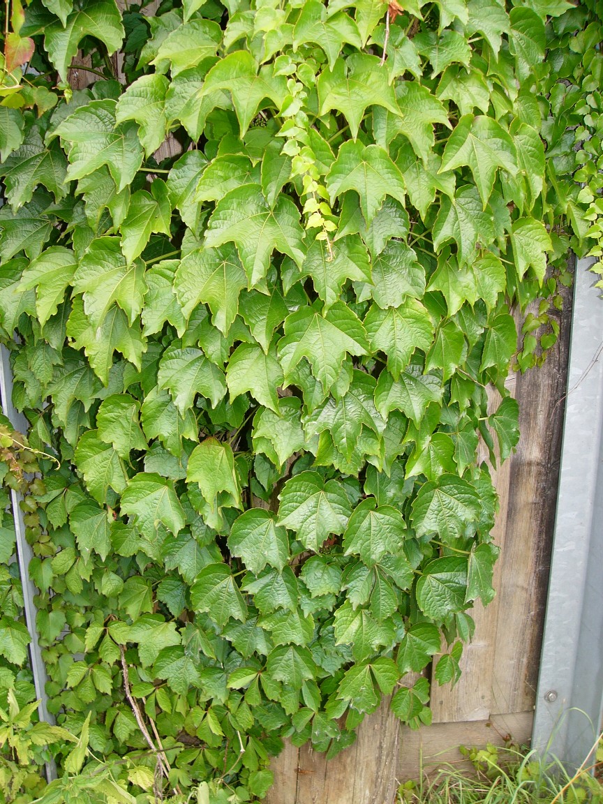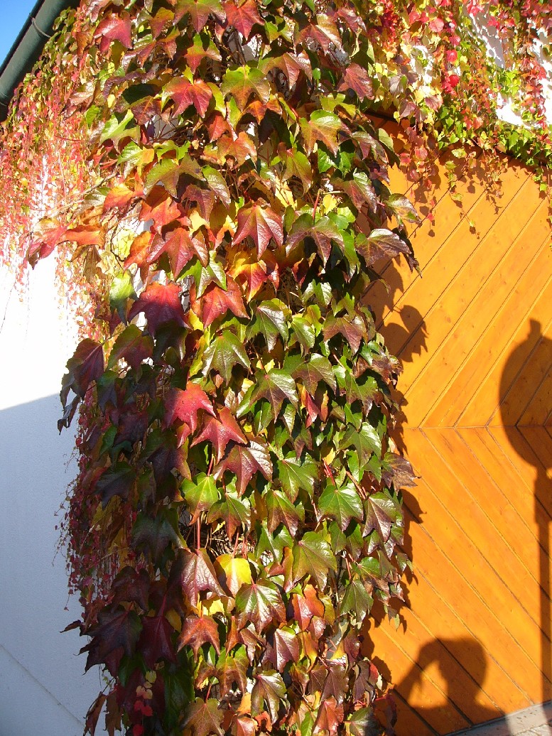 Selbstkletternde Jungfernrebe (Parthenocissus quinquefolia (L.) Planchon) VII - IX, Hauswände, Lärmschutzwälle,