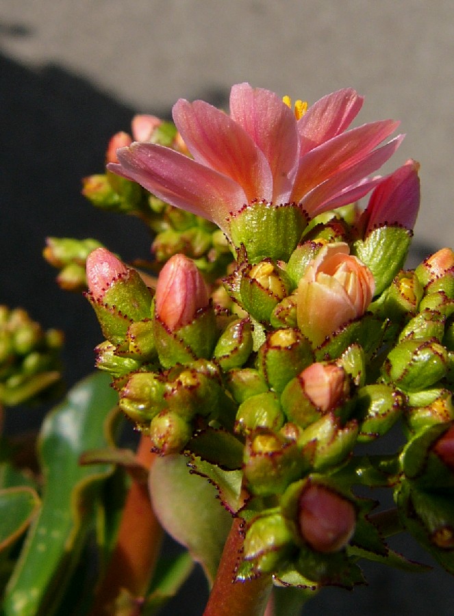 Blütenstand anfangs knäulig gehäuft, später traubig, mit 10 - 50 Blüten, Kelch 2- teilig, Kelchblätter kreisrund